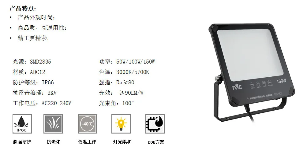雷士(NVC) 150瓦 雷士照明投光灯泛光灯户外灯家用庭院灯户外防水照明工程项目照明-150瓦 (单位:个) 雷士照明投光灯泛光灯户外灯家用庭院灯户外防水照明工程项目照明-150瓦