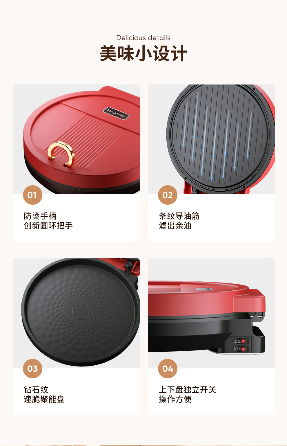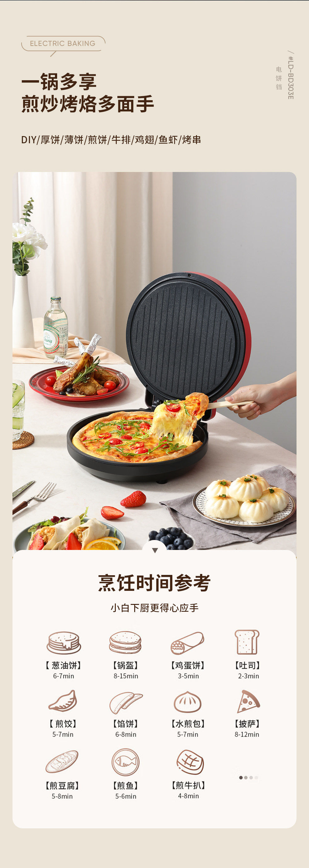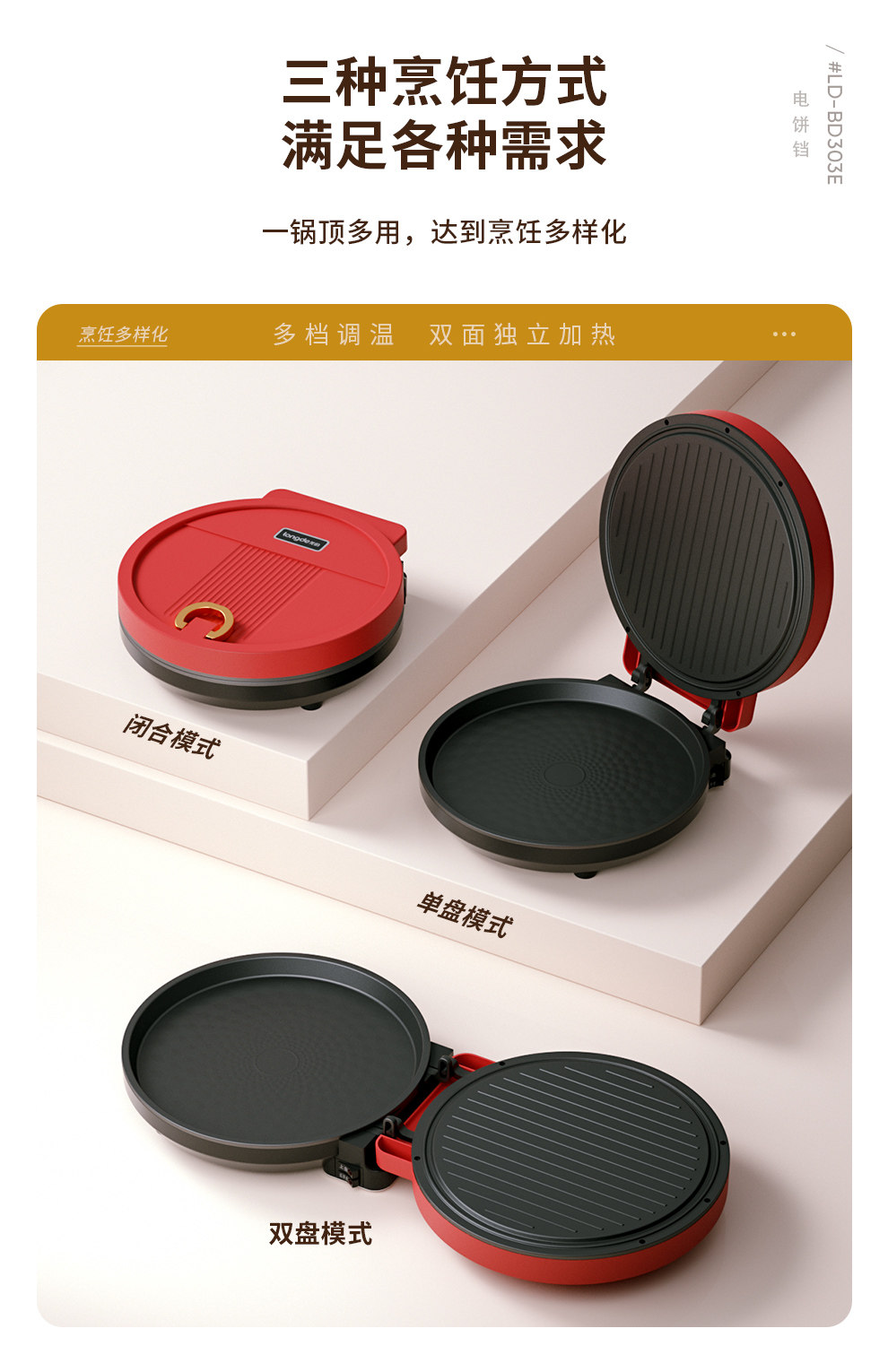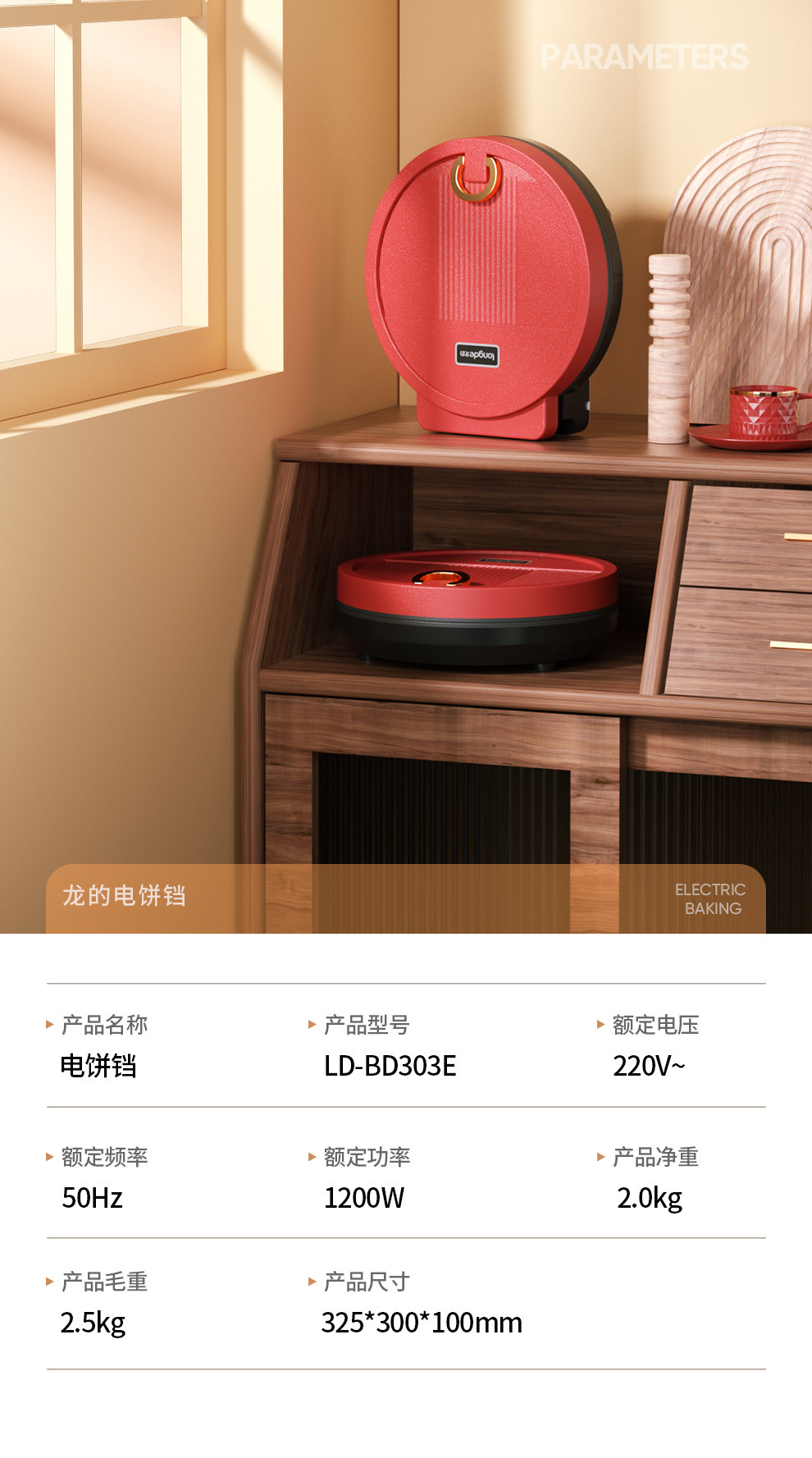 龙的(longde) 29CM彩盒包装;LD-BD303E 龙的多功能电饼铛LD-BD303E-29CM彩盒包装;LD-BD303E (单位:台) 龙的多功能电饼铛LD-BD303E-29CM彩盒包装;LD-BD303E