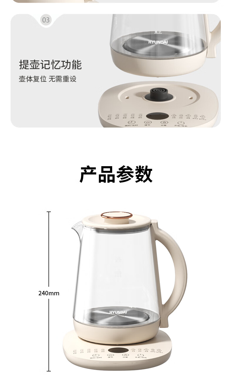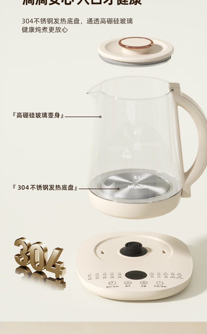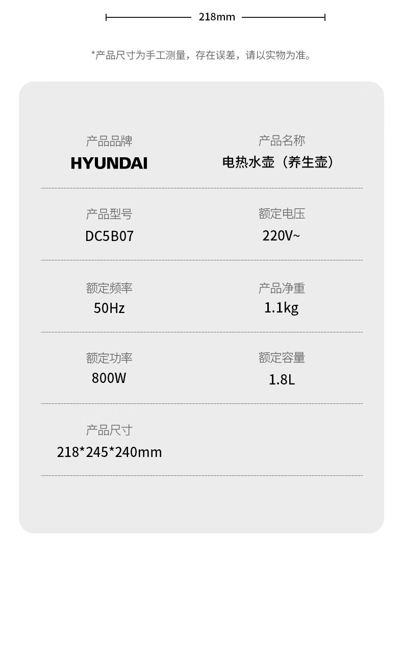 韩国现代(HYUNDAI) DC5B07 HYUNDAI电热水壶(养生壶)1.8L DC5B07 (单位:个) HYUNDAI电热水壶(养生壶)1.8L DC5B07