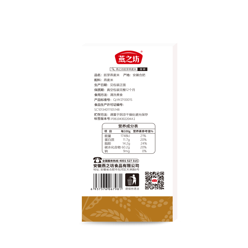 燕之坊 435g*20盒/件 燕之坊胚芽燕麦米435g/袋 (单位:袋) 燕之坊胚芽燕麦米435g/袋