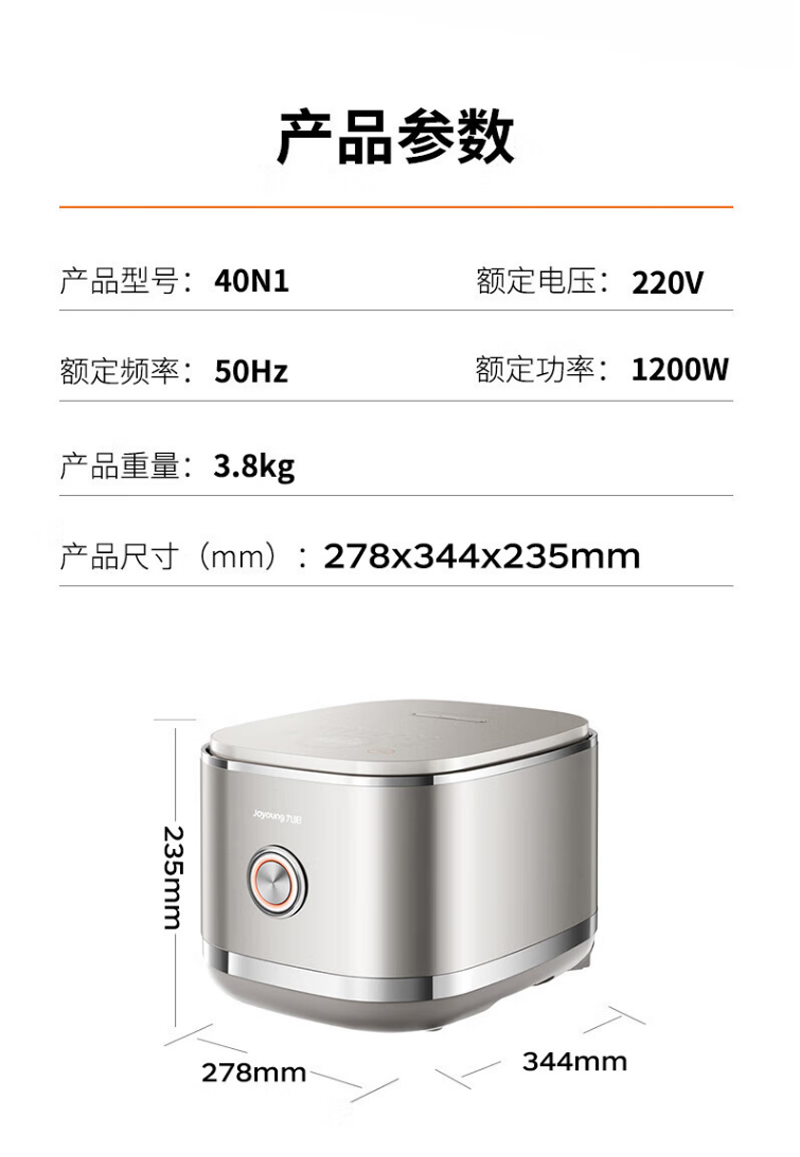 九阳(Joyoung) 40N1 九阳(Joyoung)无涂层电饭煲电饭锅风冷水润膜不锈钢内胆1200WIH电磁加热40N1 (单位:台) 九阳(Joyoung)无涂层电饭煲电饭锅风冷水润膜不锈钢内胆1200WIH电磁加热40N1