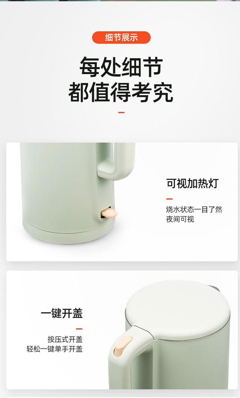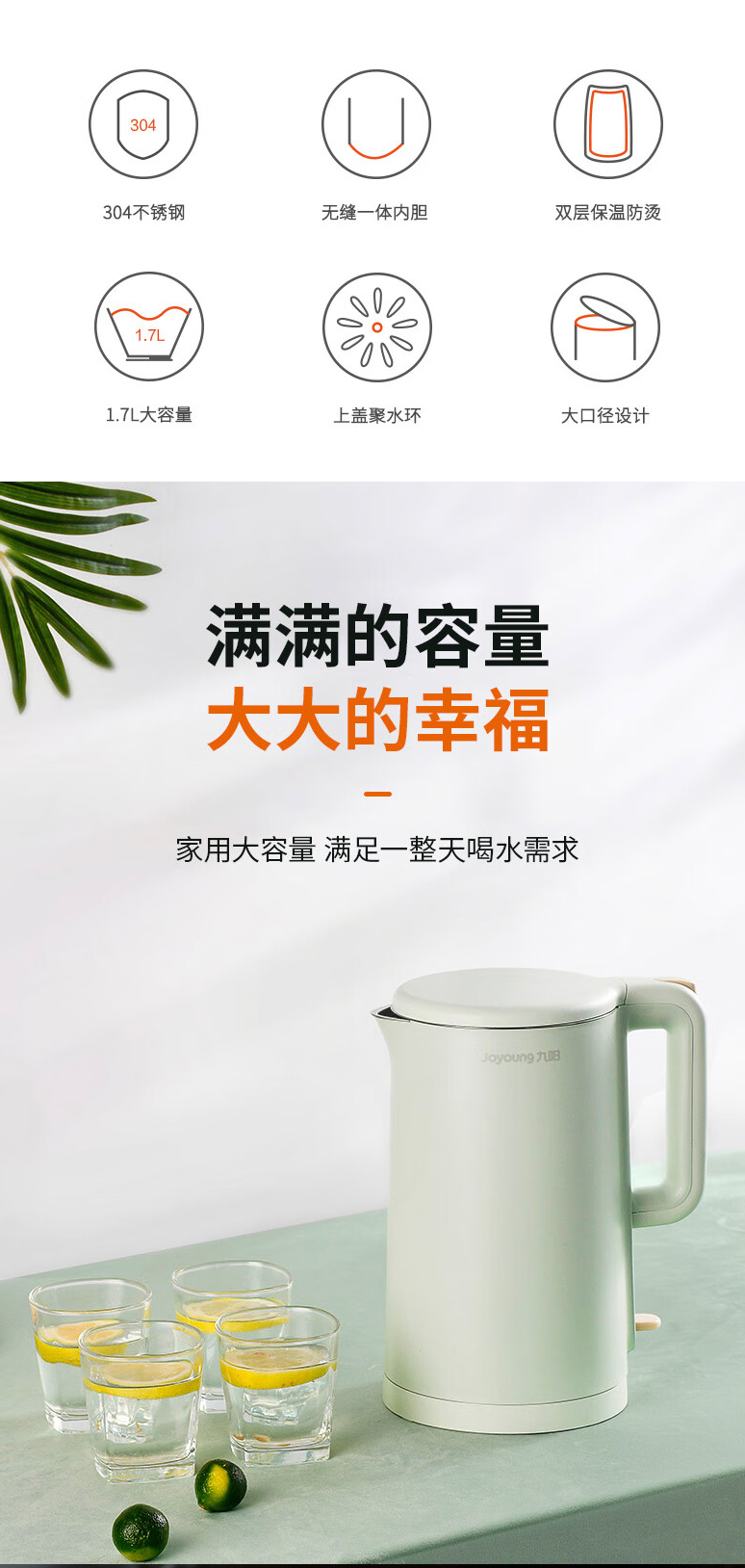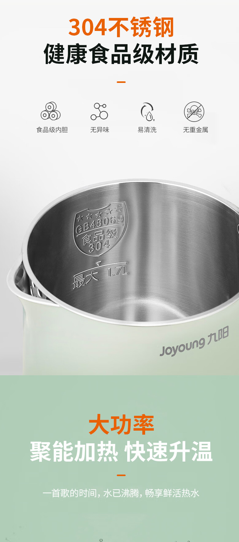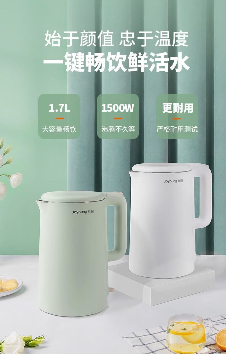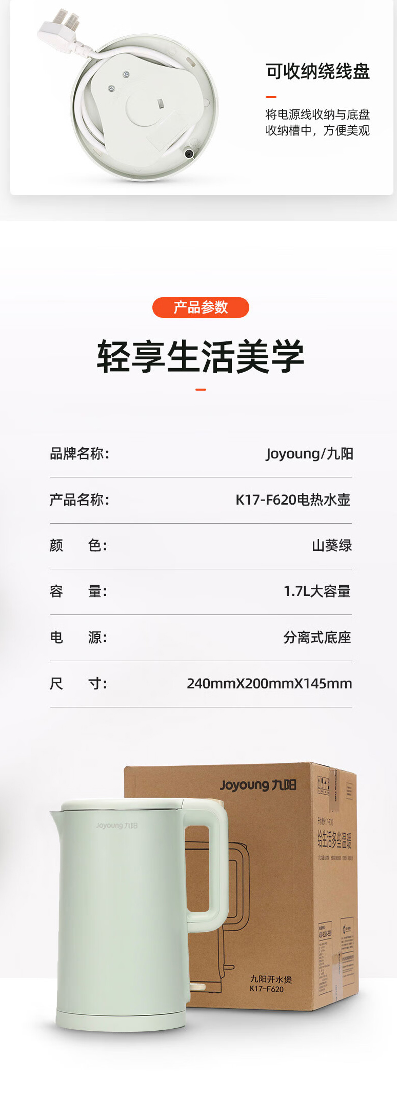 九阳(Joyoung) K17-F620 九阳(Joyoung)家用电热水壶烧水壶304不锈钢内胆双层防烫 K17-F620绿色 (单位:个) 九阳(Joyoung)家用电热水壶烧水壶304不锈钢内胆双层防烫 K17-F620绿色