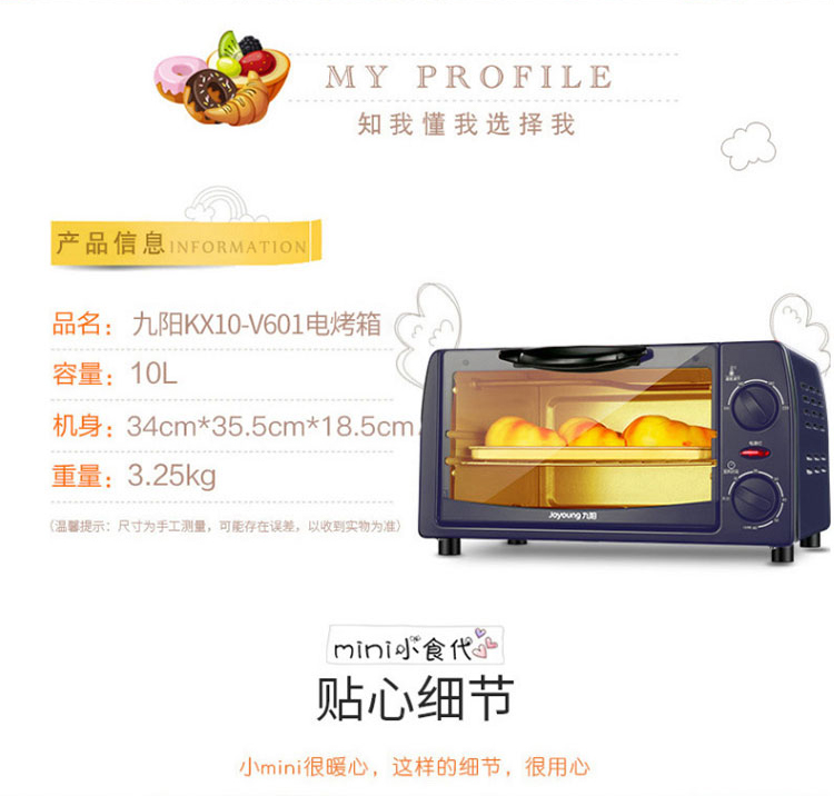 九阳(Joyoung) KX10-V601 九阳(Joyoung) 电烤箱家用多功能上下独立控温定时烤炉箱 KX10-V601 (单位:台) 九阳(Joyoung) 电烤箱家用多功能上下独立控温定时烤炉箱 KX10-V601