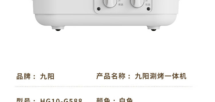 九阳(Joyoung) HG10-G588 九阳涮烤一体机HG10-G588白色4.5L (单位:台) 九阳涮烤一体机HG10-G588白色4.5L