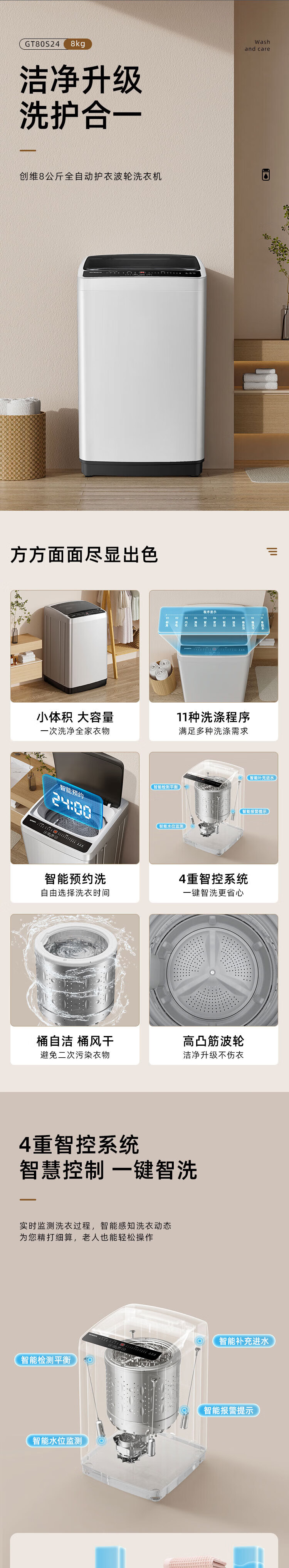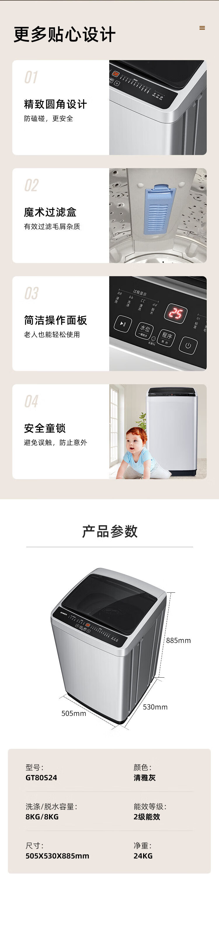 创维(Skyworth) GT80S24_清雅灰 创维(Skyworth)洗衣机波轮洗衣机8公斤GT80S24_清雅灰 (单位:台) 创维(Skyworth)洗衣机波轮洗衣机8公斤GT80S24_清雅灰