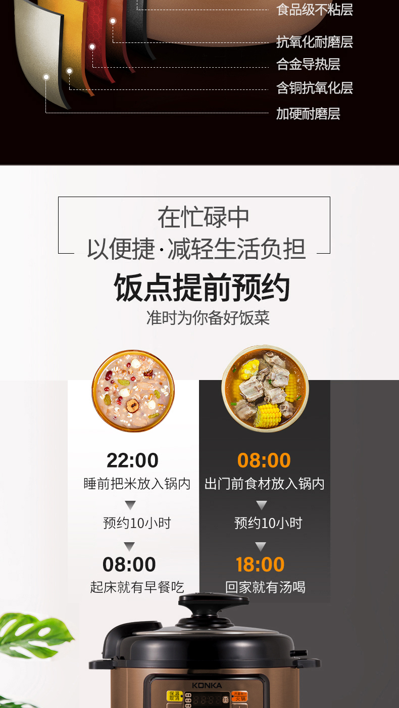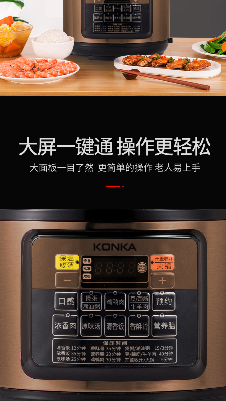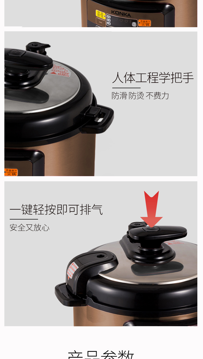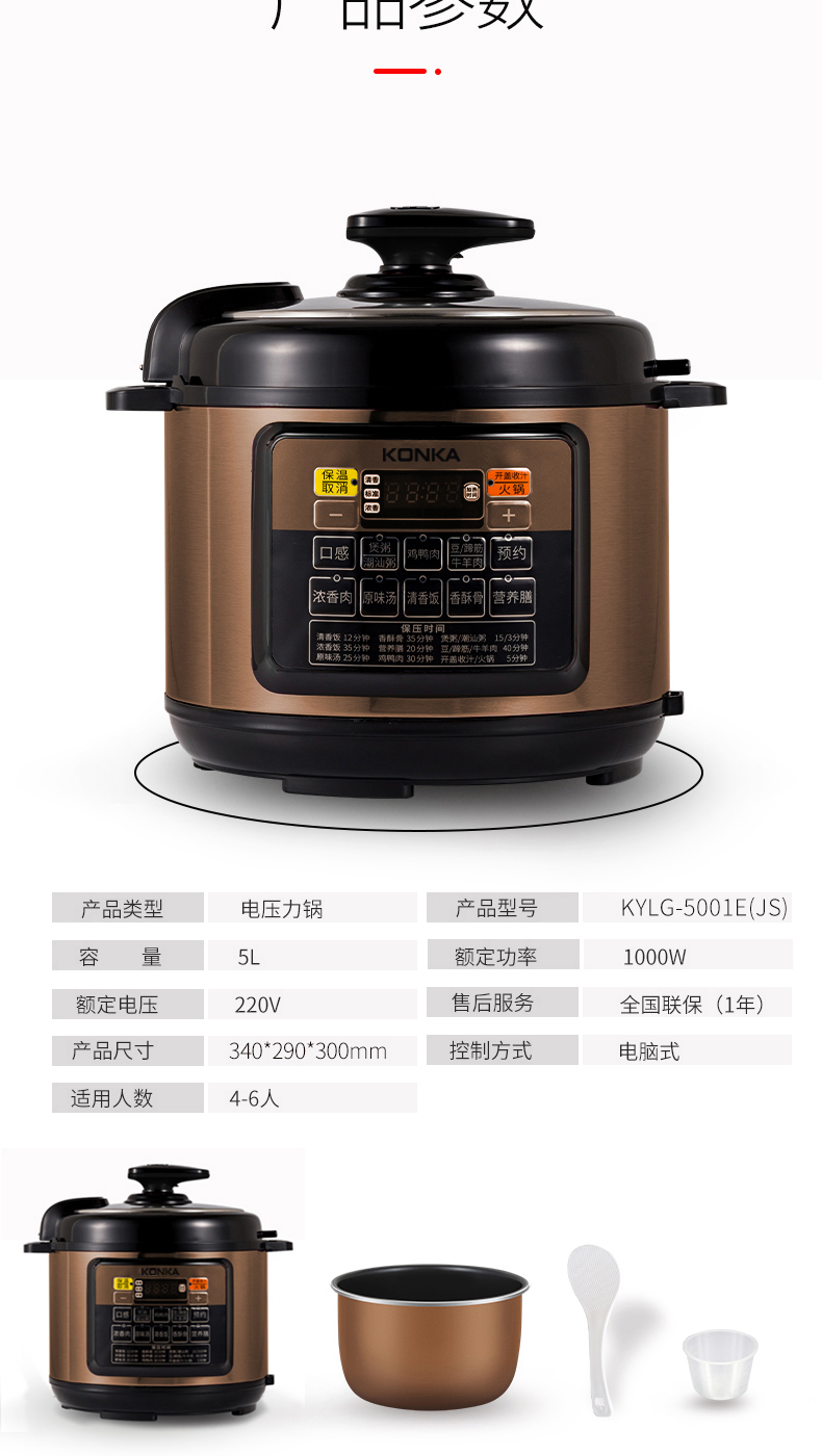 康佳(KONKA) KYLG-5001E(JS) 康佳KONKA家用电压力锅双喷内胆5L压力煲KYLG-5001E (单位:台) 康佳KONKA家用电压力锅双喷内胆5L压力煲KYLG-5001E