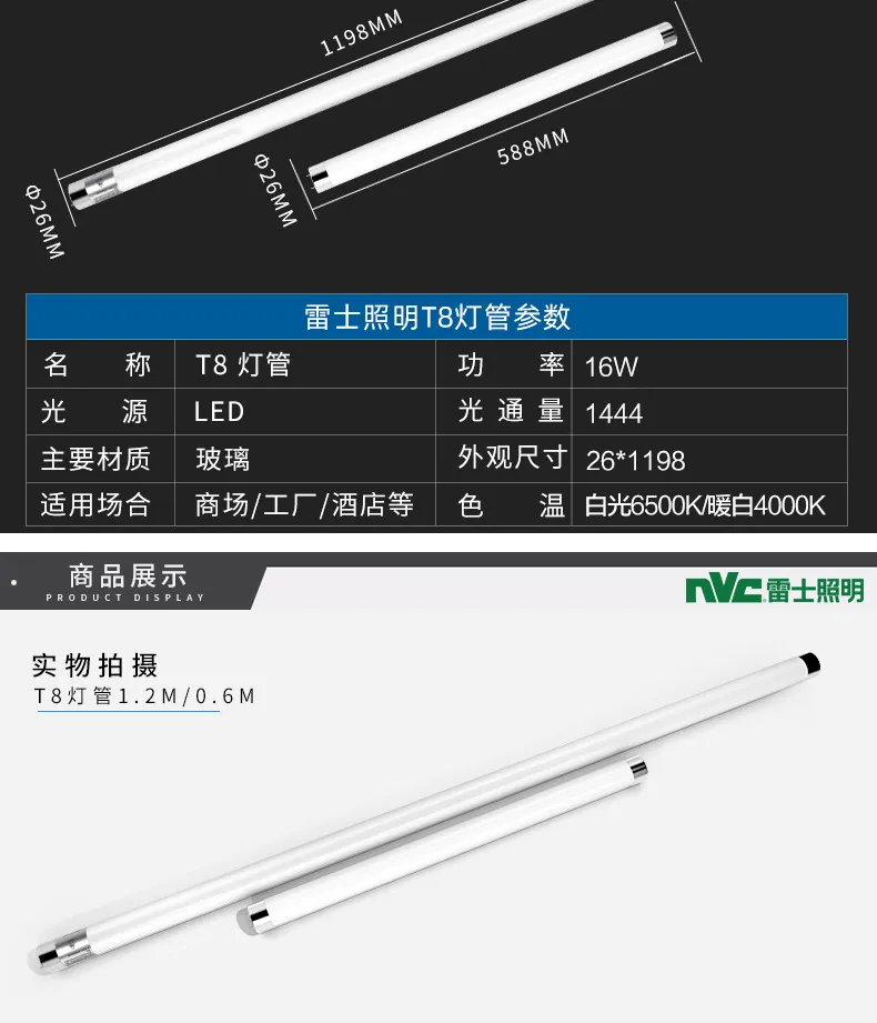 雷士(NVC) 【30支】30瓦白光★T8单灯管★双端供电【不含支架】 雷士T8灯管led支架t5节能全套荧光灯管分体高亮1.2米-【30支】30瓦白光★T8单灯管★双端供电【不含支架】 (单位:支) 雷士T8灯管led支架t5节能全套荧光灯管分体高亮1.2米-【30支】30瓦白光★T8单灯管★双端供电【不含支架】