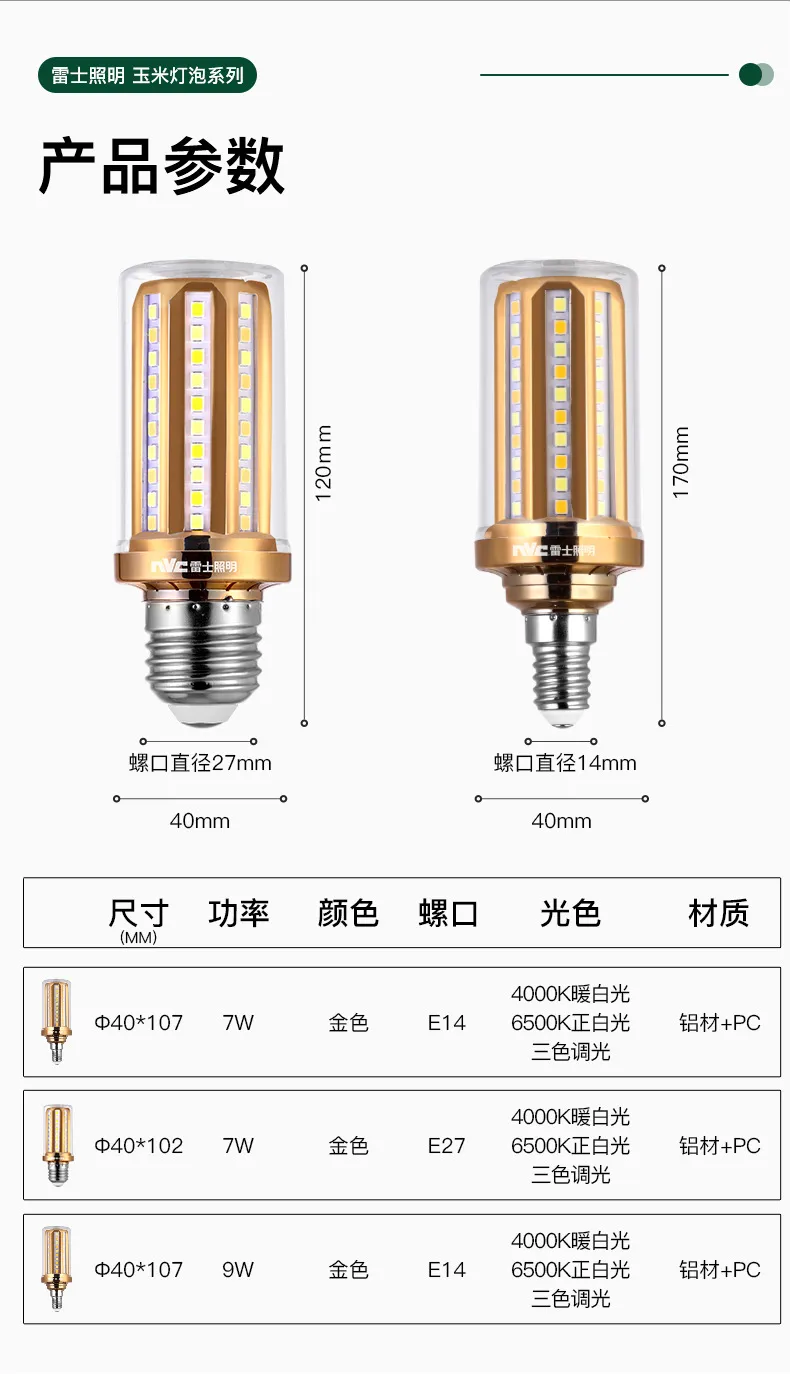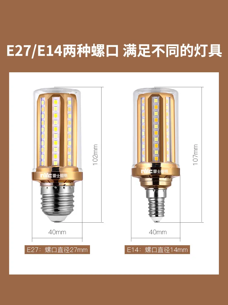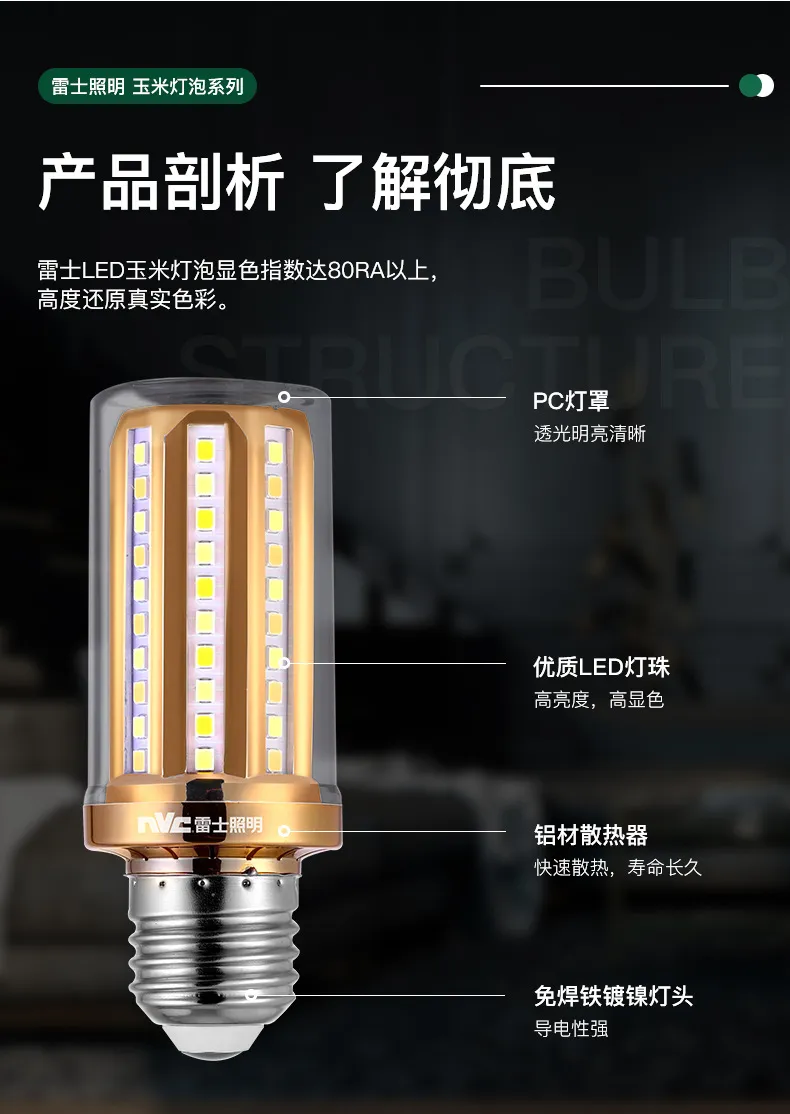 雷士(NVC) E27-9W玉米灯泡|暖白 雷士照明e27e14螺口led玉米泡蜡烛泡节能灯泡高亮三色家用灯超亮-E27-9W玉米灯泡|暖白 (单位:个) 雷士照明e27e14螺口led玉米泡蜡烛泡节能灯泡高亮三色家用灯超亮-E27-9W玉米灯泡|暖白