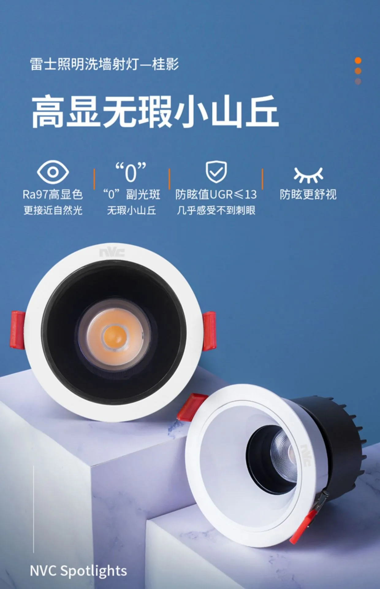 雷士(NVC) 9瓦-白杯【高显色无副光斑】|三色变光 雷士照明防眩COB射灯RA97高显色嵌入式窄边无主灯吊顶天花led桂影-9瓦-白杯【高显色无副光斑】|三色变光 (单位:个) 雷士照明防眩COB射灯RA97高显色嵌入式窄边无主灯吊顶天花led桂影-9瓦-白杯【高显色无副光斑】|三色变光