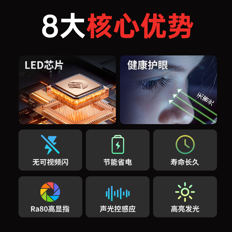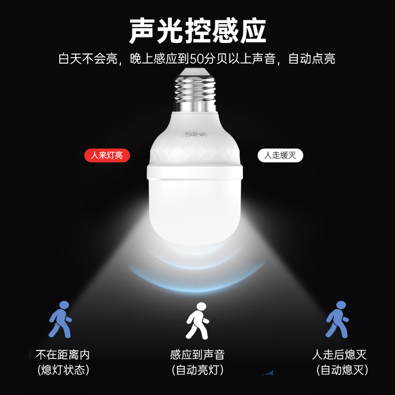 E27螺口10W白光6500K声光控感应DP22【5只装】