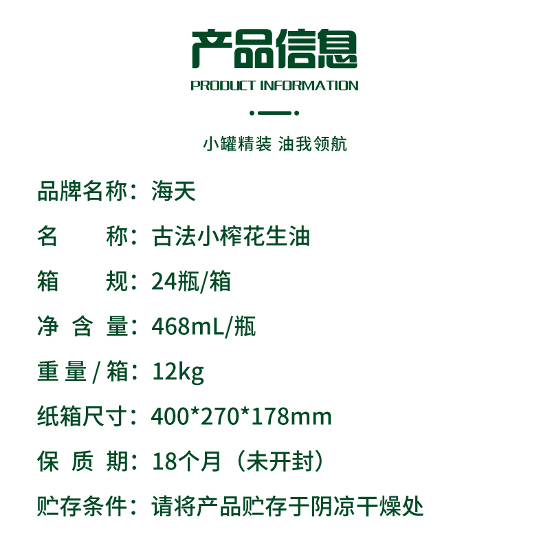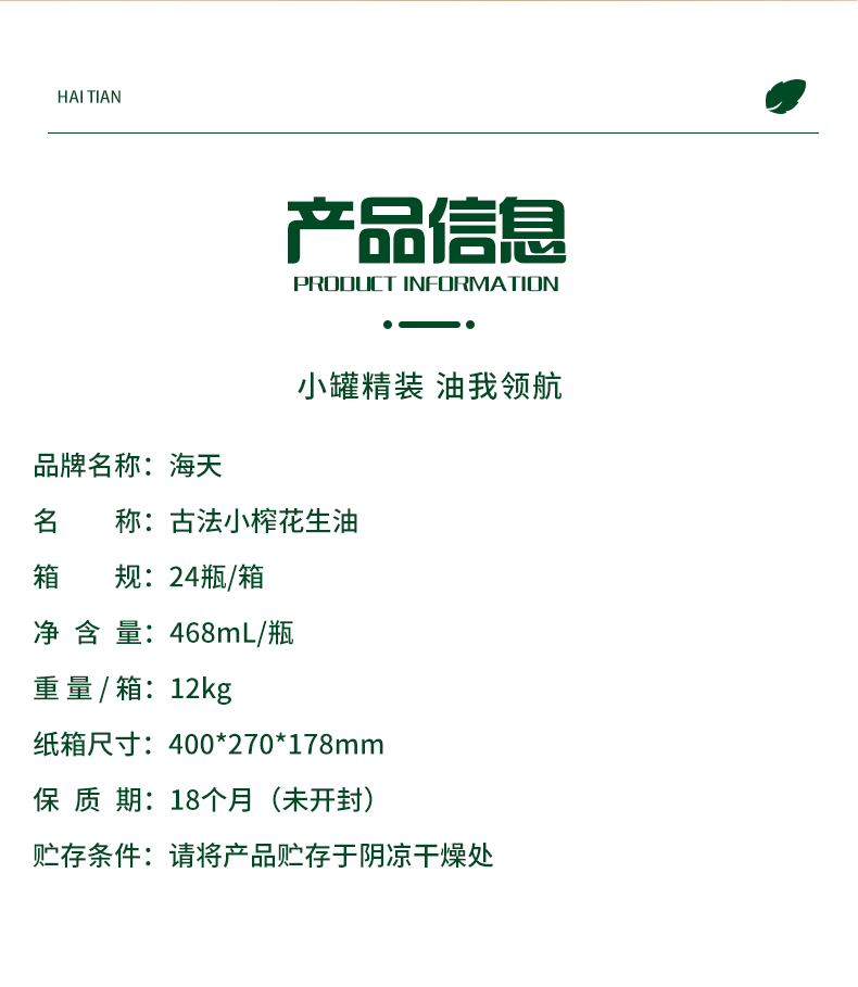 海天(HTDZ) 468ml 海天古法小榨花生油468ml易拉罐 (单位:罐) 海天古法小榨花生油468ml易拉罐