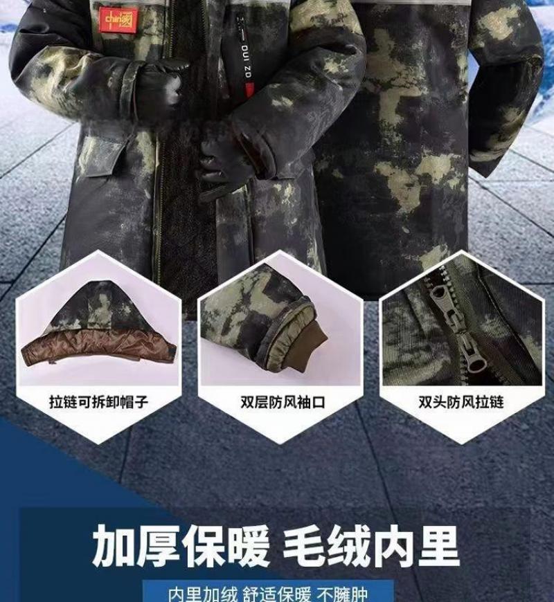 防寒服冷库工作服 中长款防水反光条【黄废墟】中号(130—160斤)*2件