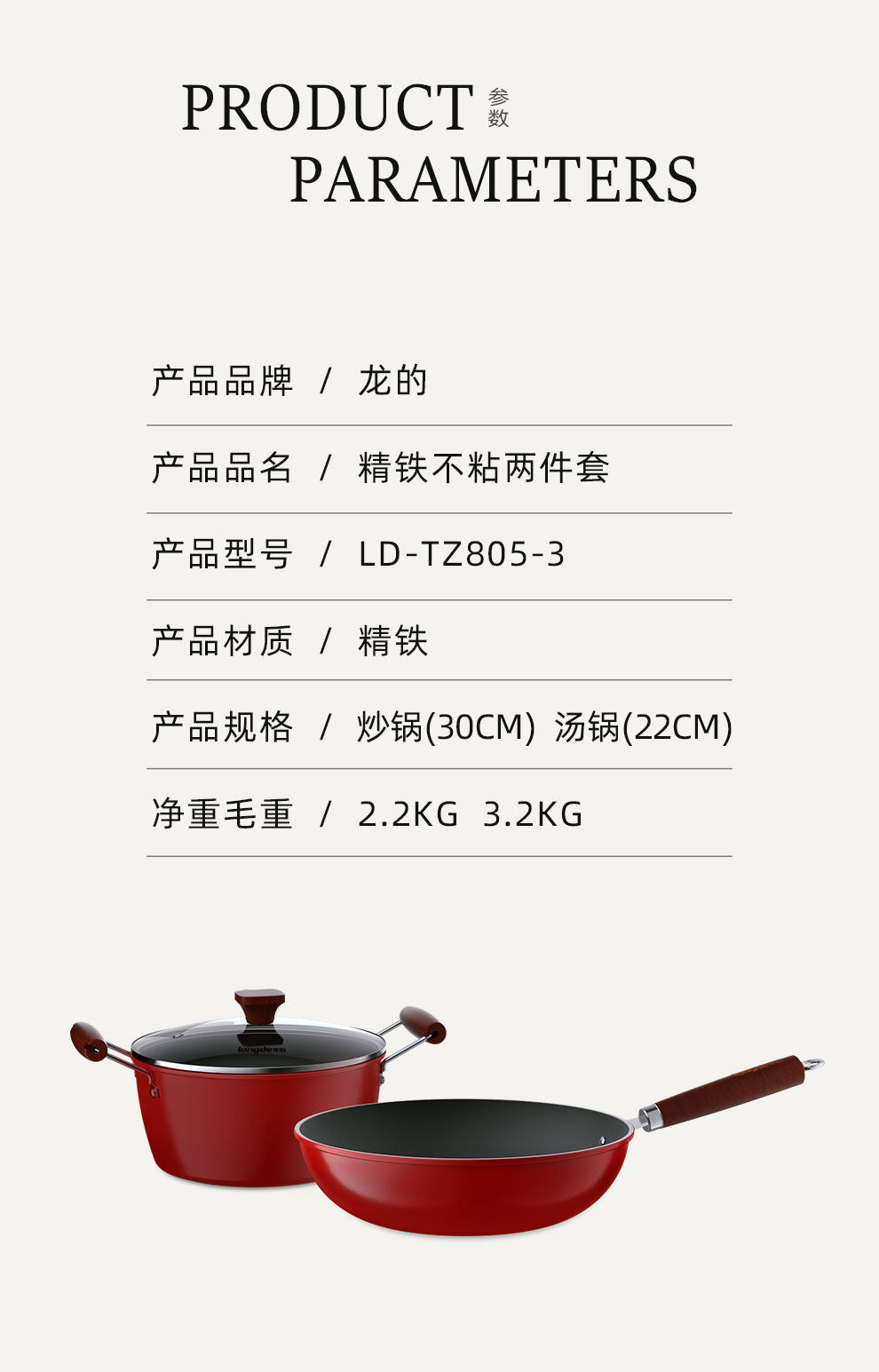 龙的(longde) 炒锅30CM汤锅22CM彩盒包装;LD-TZ805-3 龙的精铁不粘两件套LD-TZ805-3-炒锅30CM汤锅22CM彩盒包装;LD-TZ805-3 (单位:套) 龙的精铁不粘两件套LD-TZ805-3-炒锅30CM汤锅22CM彩盒包装;LD-TZ805-3