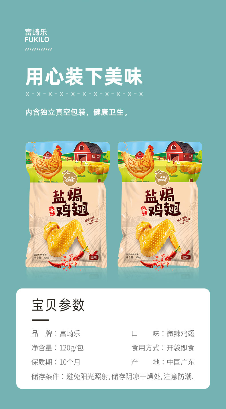 富崎乐(FUKILO) 120g*2袋 富崎乐盐焗鸡翅(微辣) 120g/袋 2袋装 (单位:袋) 富崎乐盐焗鸡翅(微辣) 120g/袋 2袋装