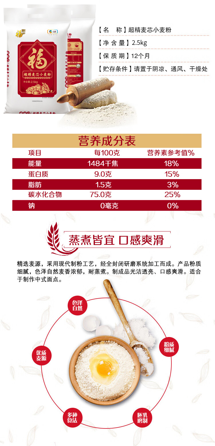 福临门 2.5kg 中粮福临门超精麦芯小麦粉2.5kg (单位:袋) 中粮福临门超精麦芯小麦粉2.5kg