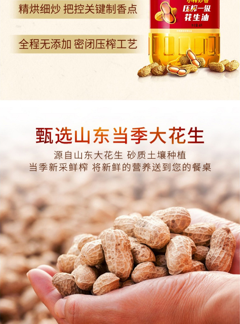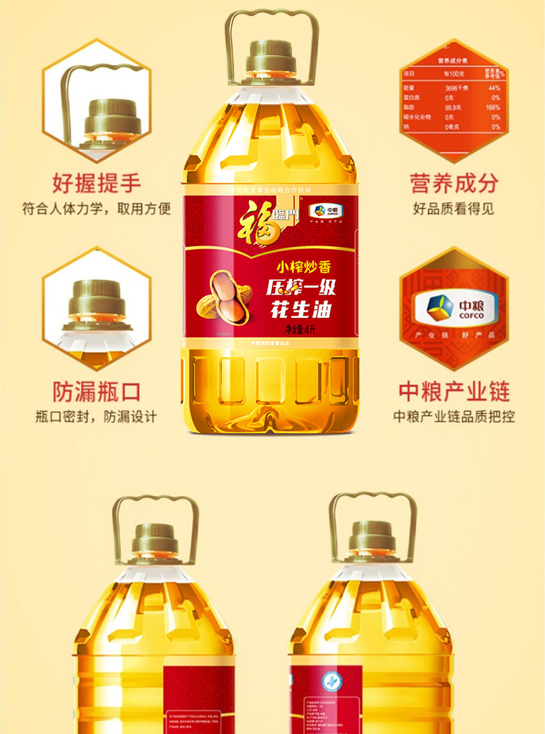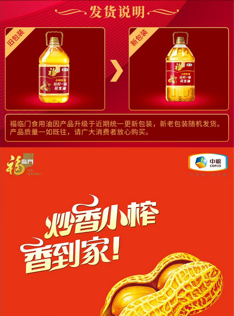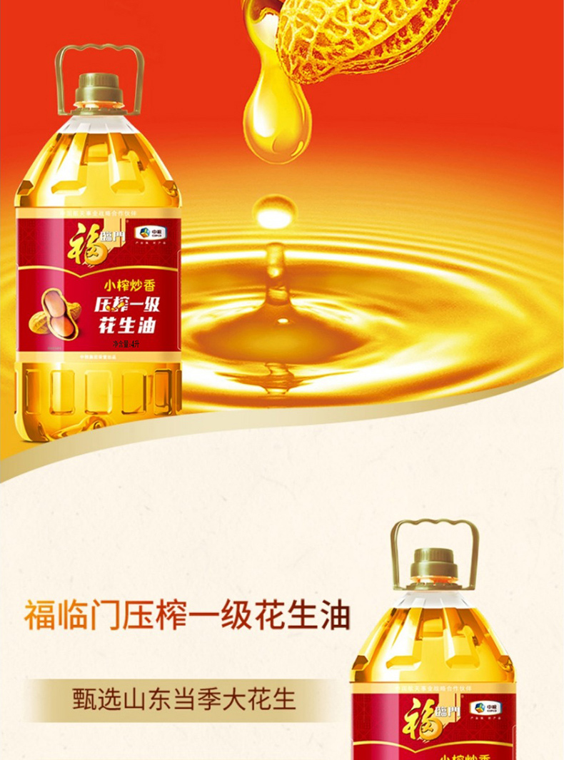 福临门 4L 中粮福临门小榨炒香压榨一级花生油4L (单位:桶) 中粮福临门小榨炒香压榨一级花生油4L