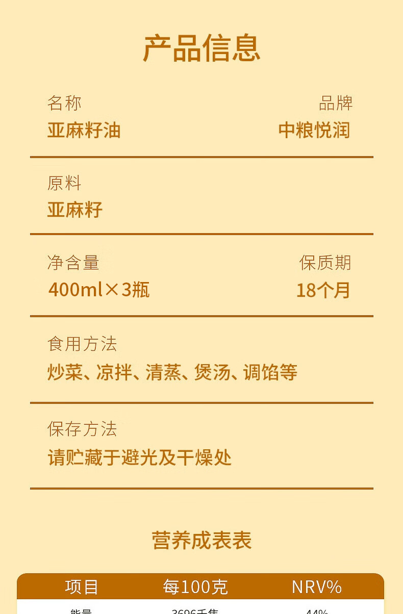 福临门 400ml*3 中粮悦润亚麻籽油礼盒400ml*3 (单位:盒) 中粮悦润亚麻籽油礼盒400ml*3