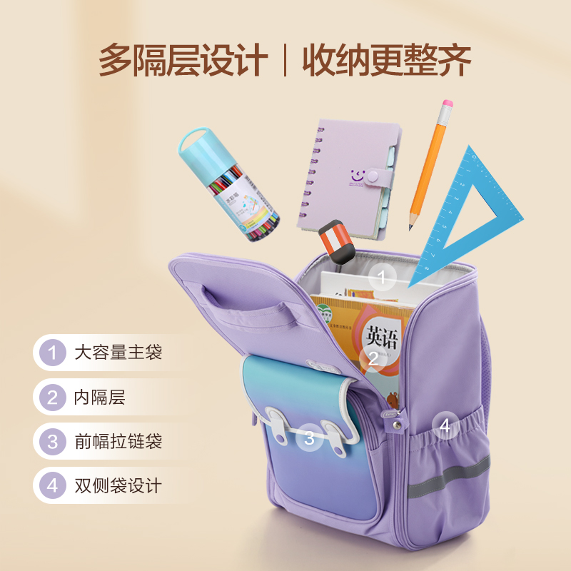 爱华仕(OIWAS) OCB5027 爱华仕(OIWAS)书包 小学生减负护脊 防泼水英伦风书包OCB5027默认紫色(蓝色备注) (单位:个) 爱华仕(OIWAS)书包 小学生减负护脊 防泼水英伦风书包OCB5027默认紫色(蓝色备注)