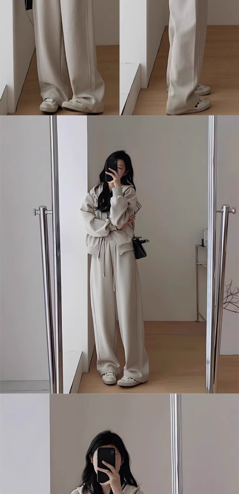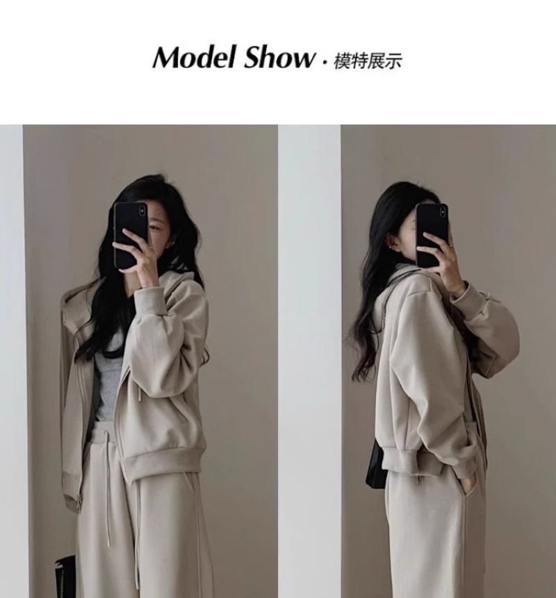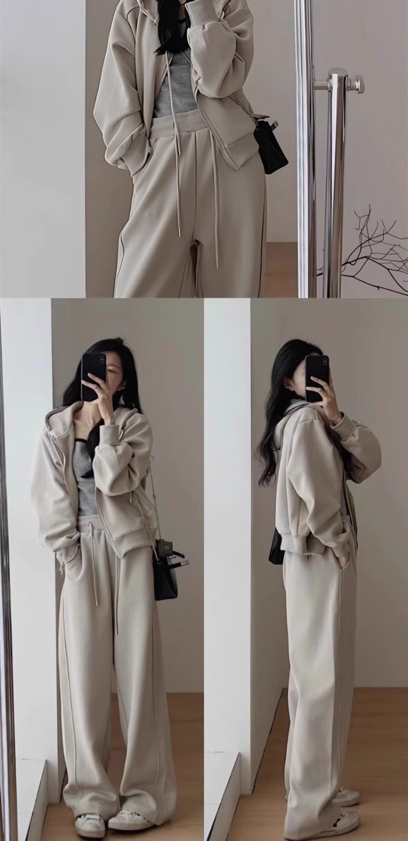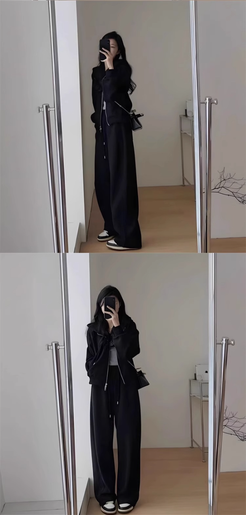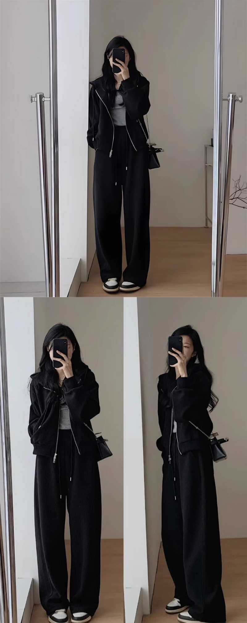 秋冬休闲卫衣运动衣服套装连帽女士 黑色外套+裤子(两件套)XL(120-130斤)
