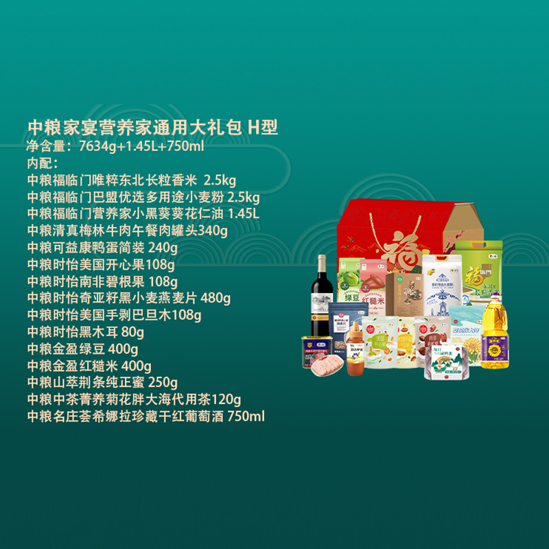 中粮 7634g+750ml+1.45L 2025中粮家宴营养家通用大礼包H型 (单位:盒) 2025中粮家宴营养家通用大礼包H型
