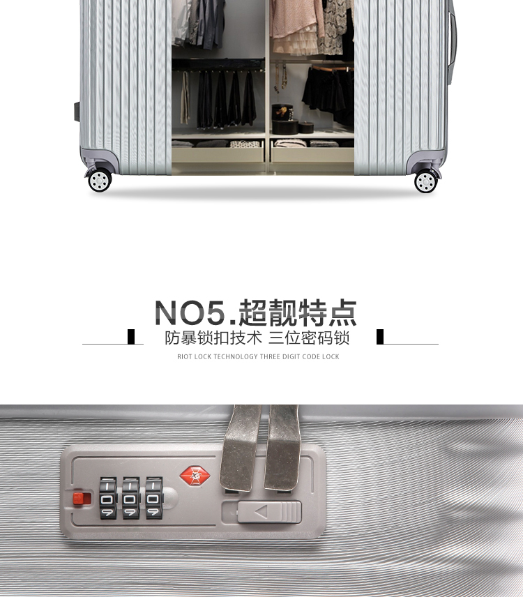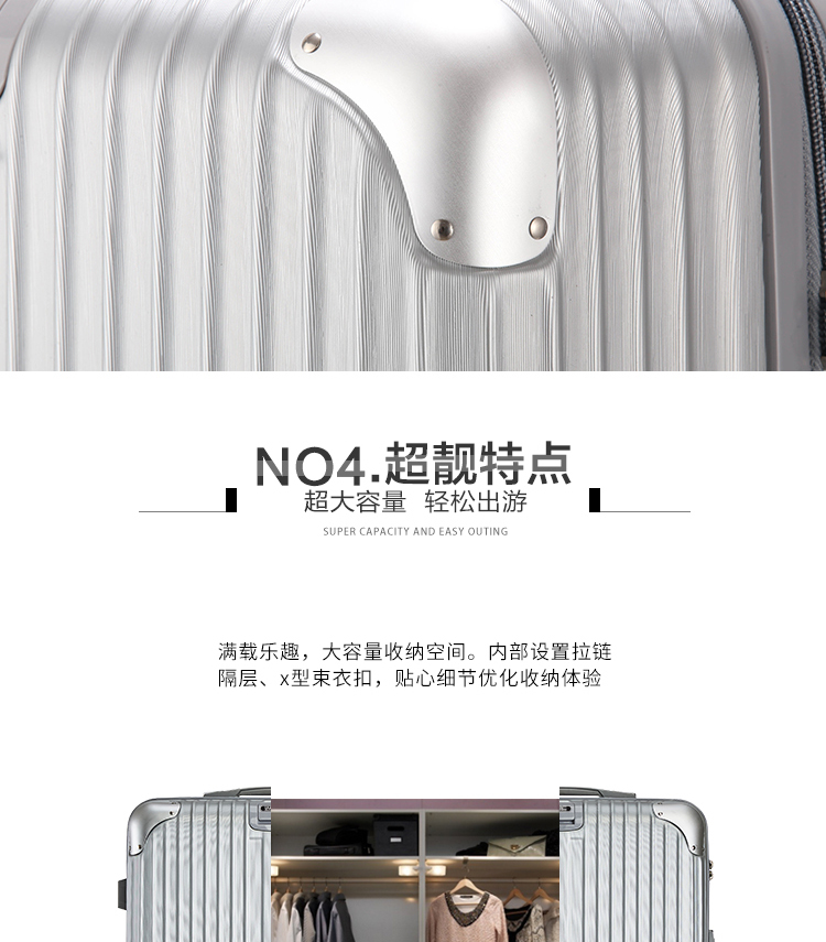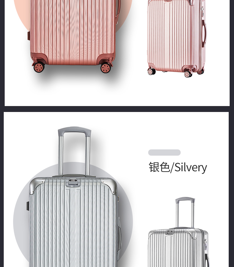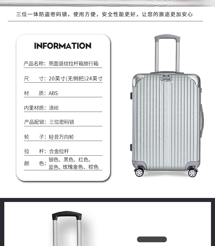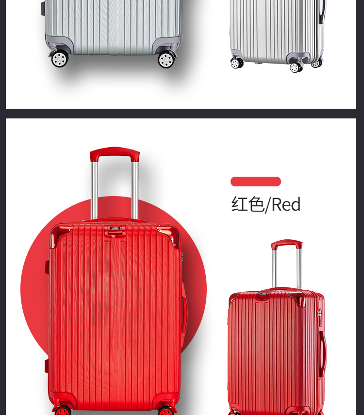 WRC W-J801 24寸银色 WRC经典竖纹亮面W-J801拉杆箱 24寸银色 (单位:个) WRC经典竖纹亮面W-J801拉杆箱 24寸银色