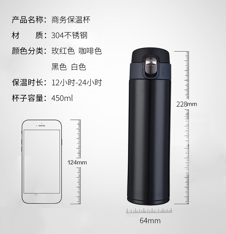 上亨(shangheng) 日用杂品 上亨弹跳保温杯SHZH-CFB015黑色 (单位:个) 上亨弹跳保温杯SHZH-CFB015黑色
