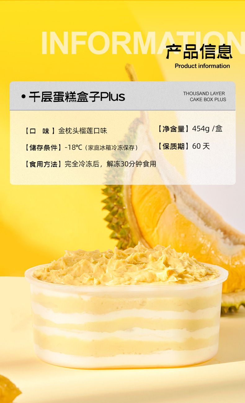 榴芒一刻 454g/盒 tyllhz 榴芒一刻榴莲千层盒子蛋糕454g/盒早餐下午茶糕点 (单位:克) 榴芒一刻榴莲千层盒子蛋糕454g/盒早餐下午茶糕点