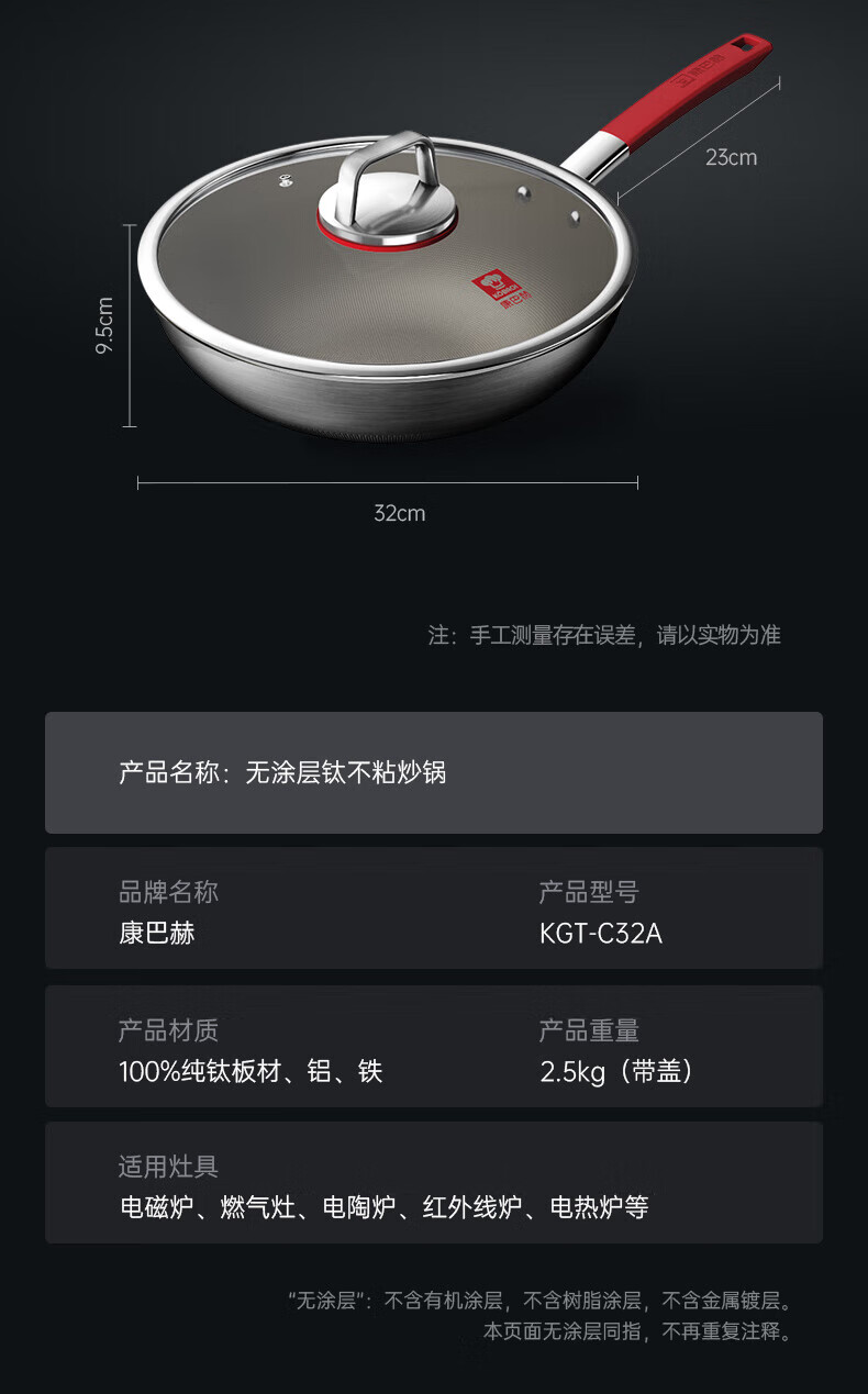 康巴赫(KBH) KGT-C32A 康巴赫(KBH)无涂层钛不粘炒锅KGT-C32A (单位:个) 康巴赫(KBH)无涂层钛不粘炒锅KGT-C32A