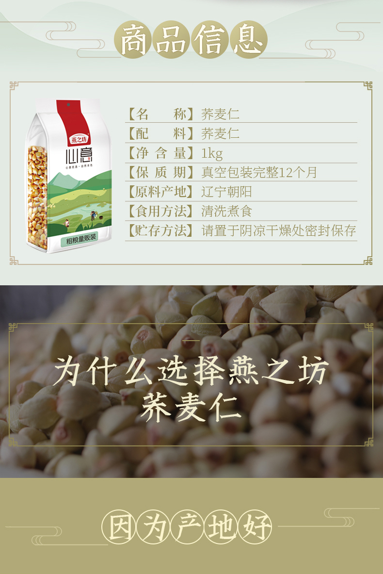 燕之坊 1kg*12袋/件 燕之坊荞麦仁1kg/袋 (单位:袋) 燕之坊荞麦仁1kg/袋