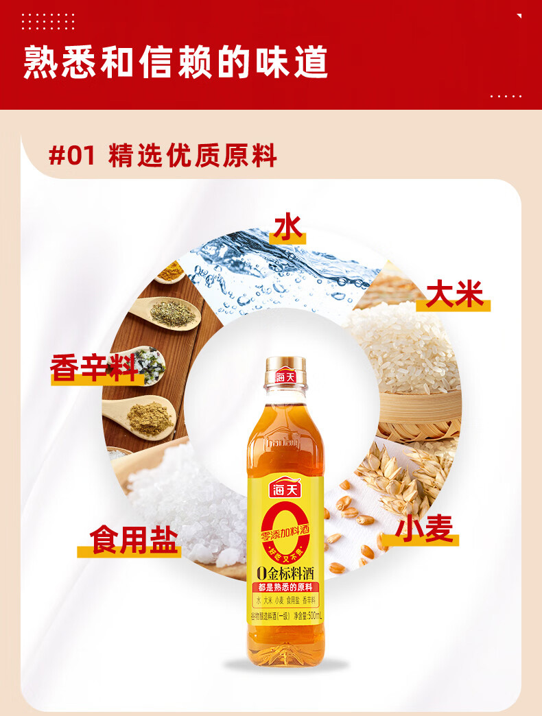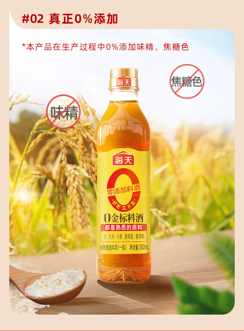 海天(HTDZ) 500ml*3 海天0金标料酒500ml*3瓶(中华老字号) (单位:瓶) 海天0金标料酒500ml*3瓶(中华老字号)
