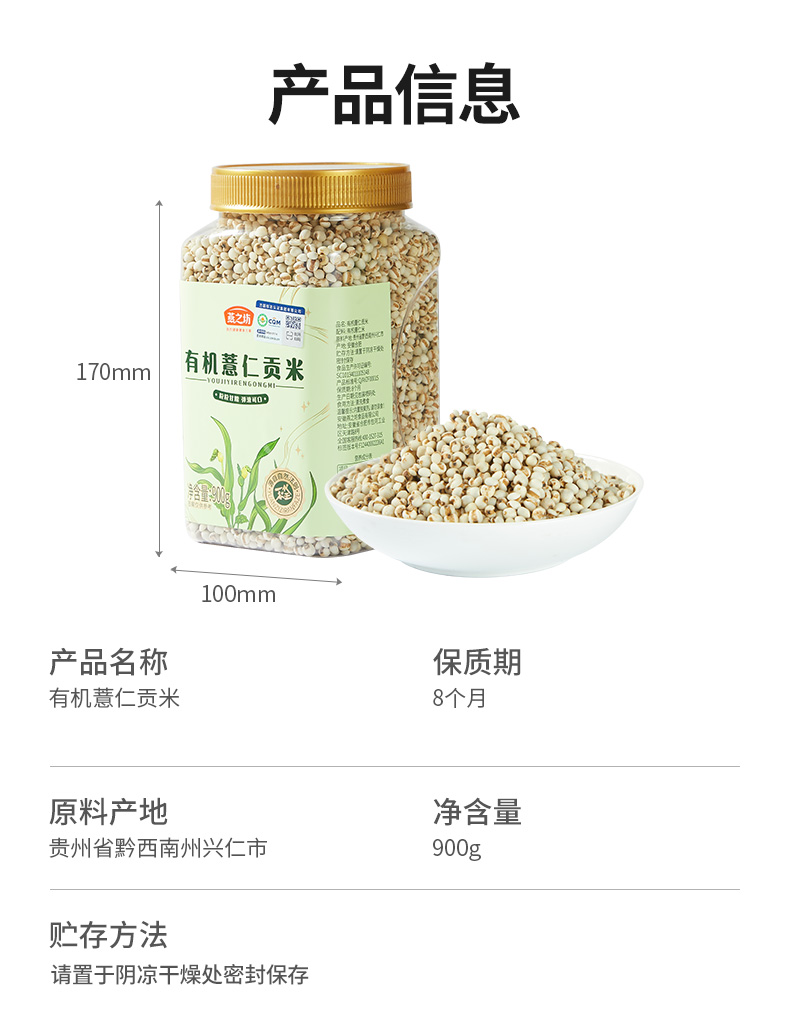 燕之坊 900g*15罐/件 燕之坊有机薏仁贡米900g/罐 (单位:罐) 燕之坊有机薏仁贡米900g/罐