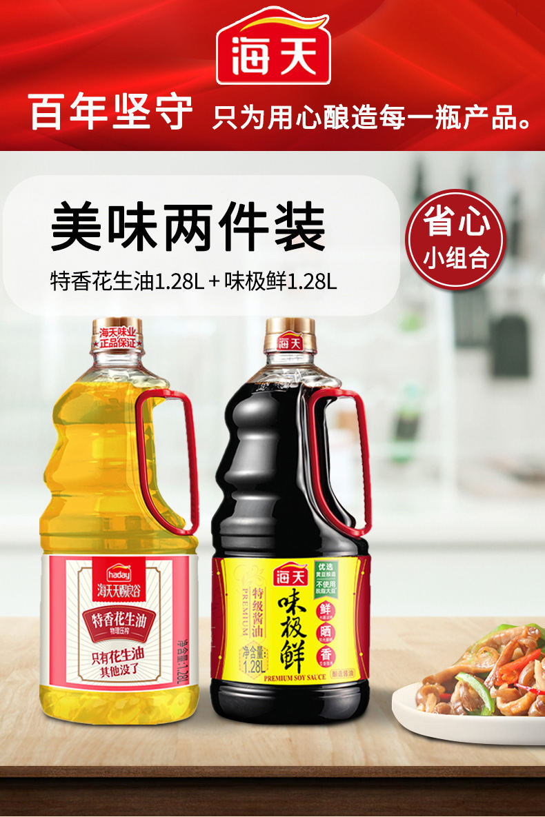 海天(HTDZ) 组合装 海天厨房调味组合装(花生油1.28L+味极鲜酱油1.28L) (单位:套) 海天厨房调味组合装(花生油1.28L+味极鲜酱油1.28L)