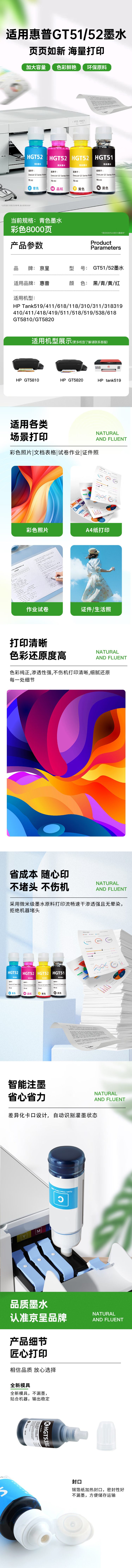 京呈 GT52 墨水 8000页 70ml (单位:支) 适用GT51惠普墨水HP310/410/5810/5820/418/411/518/519墨水 蓝色