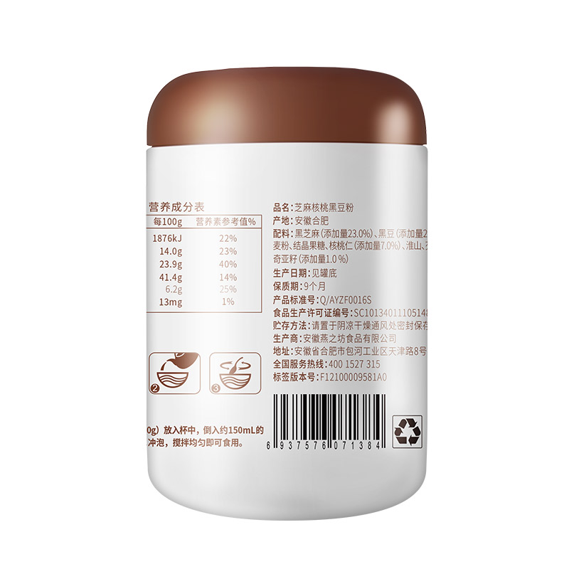 燕之坊 500g*20罐/件 燕之坊芝麻核桃黑豆粉500g/罐 (单位:克) 燕之坊芝麻核桃黑豆粉500g/罐
