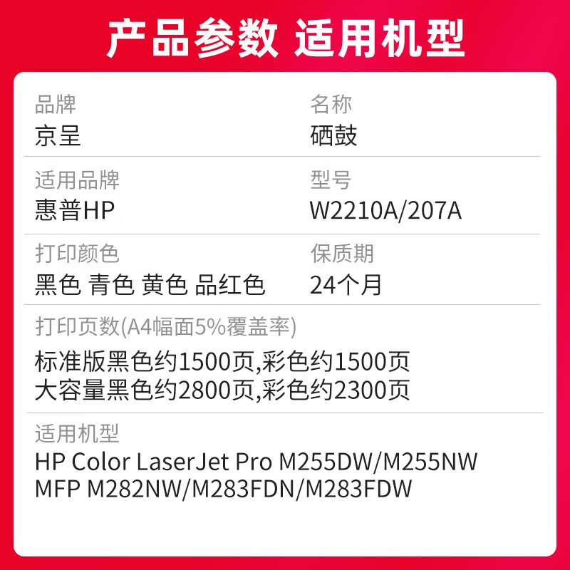 京呈 W2210X 大容量硒鼓套装 带芯片 9700页 4支/套 (单位:套) 适用惠普M255DW 255NW硒鼓彩色打印机M282NW M283FDN碳粉盒HP207A墨盒 四色