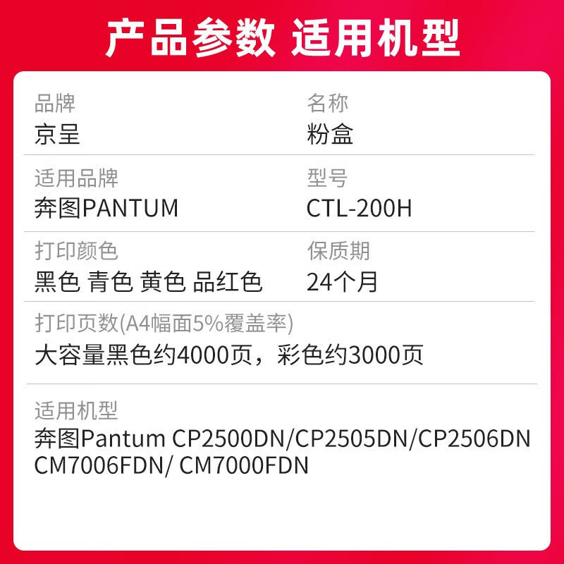 京呈 CTL-200HY 粉盒 3000页 (单位:支) 适用奔图cp2500dn粉盒2505 2506DN打印机CM7006FDN墨粉 黄色