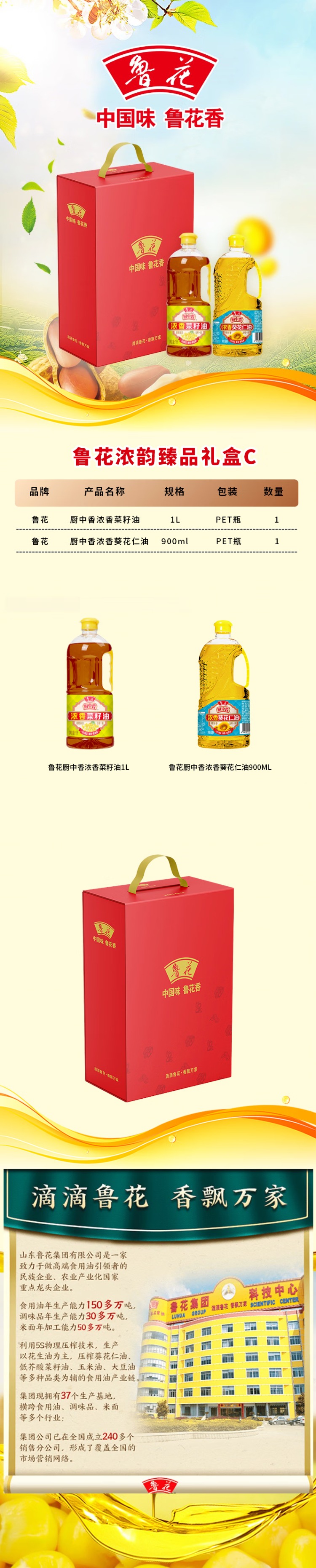 鲁花 礼盒C 浓韵臻品 浓香菜籽油1L/浓香葵花仁油900ML (单位:盒)