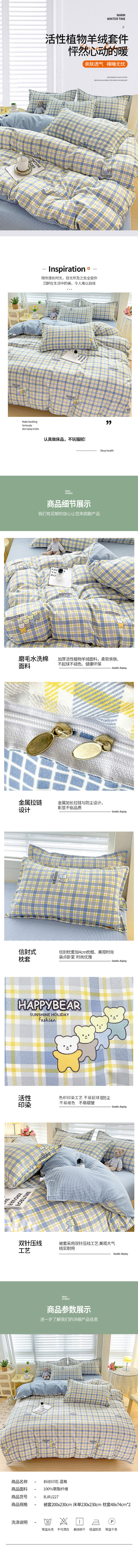 北极绒(Bejiron) BJRJ227 蓝格 北极绒 斜纹印花床单四件套 200*230cm BJRJ227 蓝格 布袋装 (单位:套) 北极绒 斜纹印花床单四件套 200*230cm BJRJ227 蓝格 布袋装