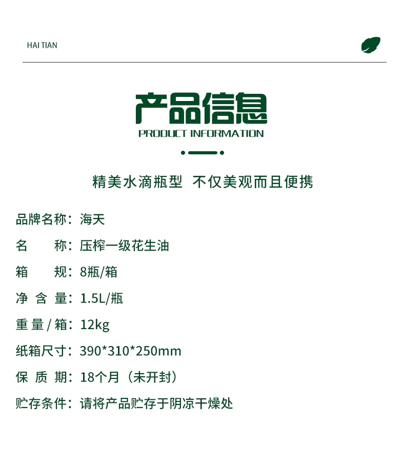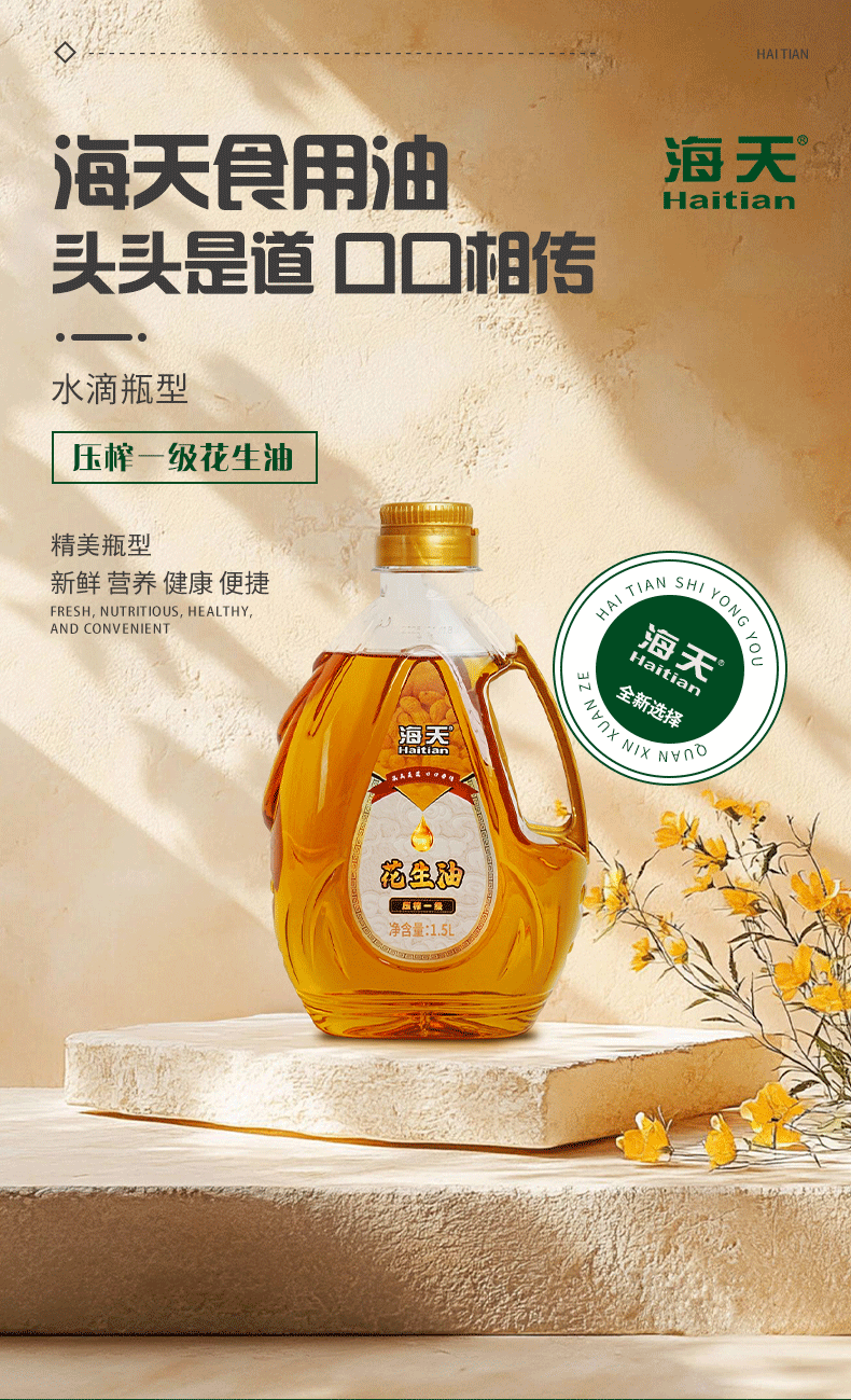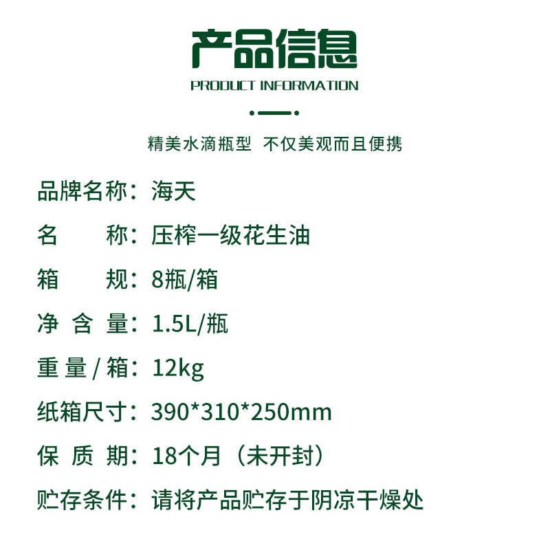海天(HTDZ) 1.5L 海天压榨一级花生油1.5L水滴壶 (单位:升) 海天压榨一级花生油1.5L水滴壶