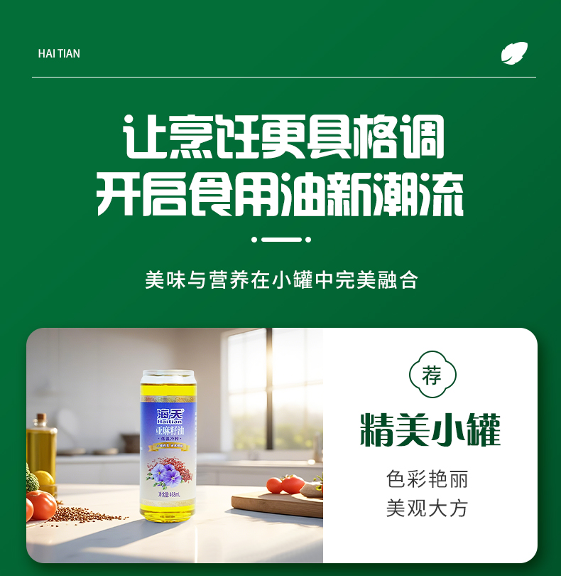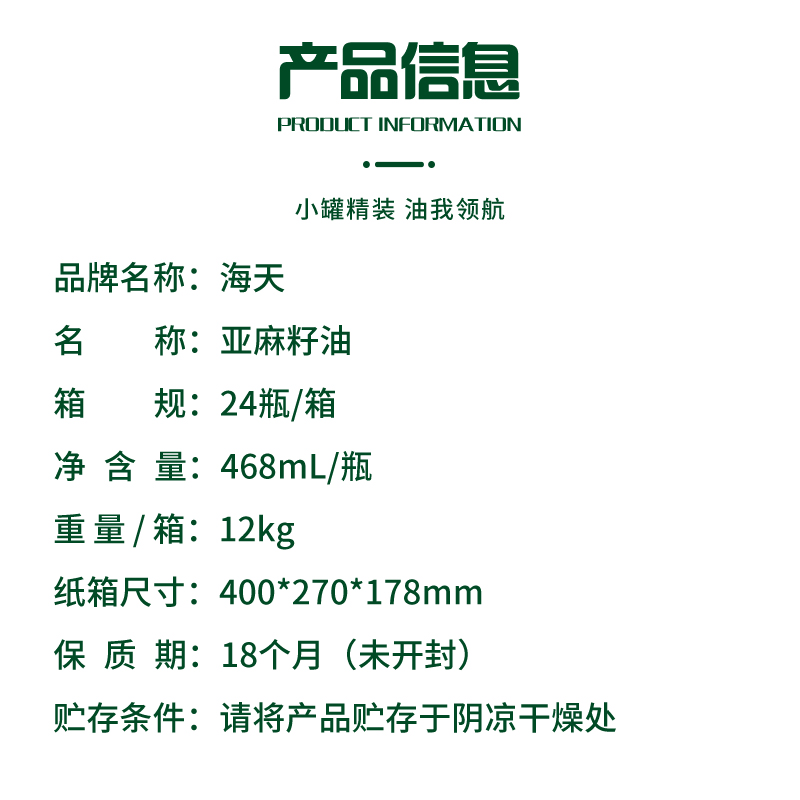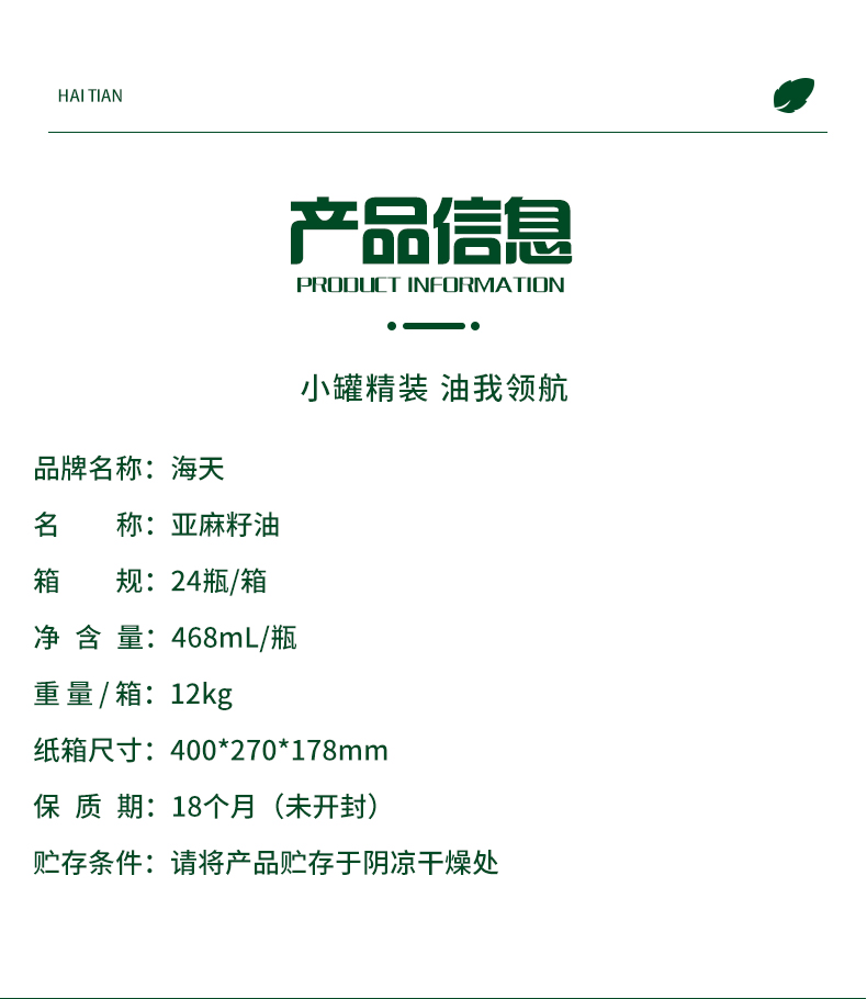 海天(HTDZ) 468ml 海天亚麻籽油468ml易拉罐 (单位:毫升) 海天亚麻籽油468ml易拉罐