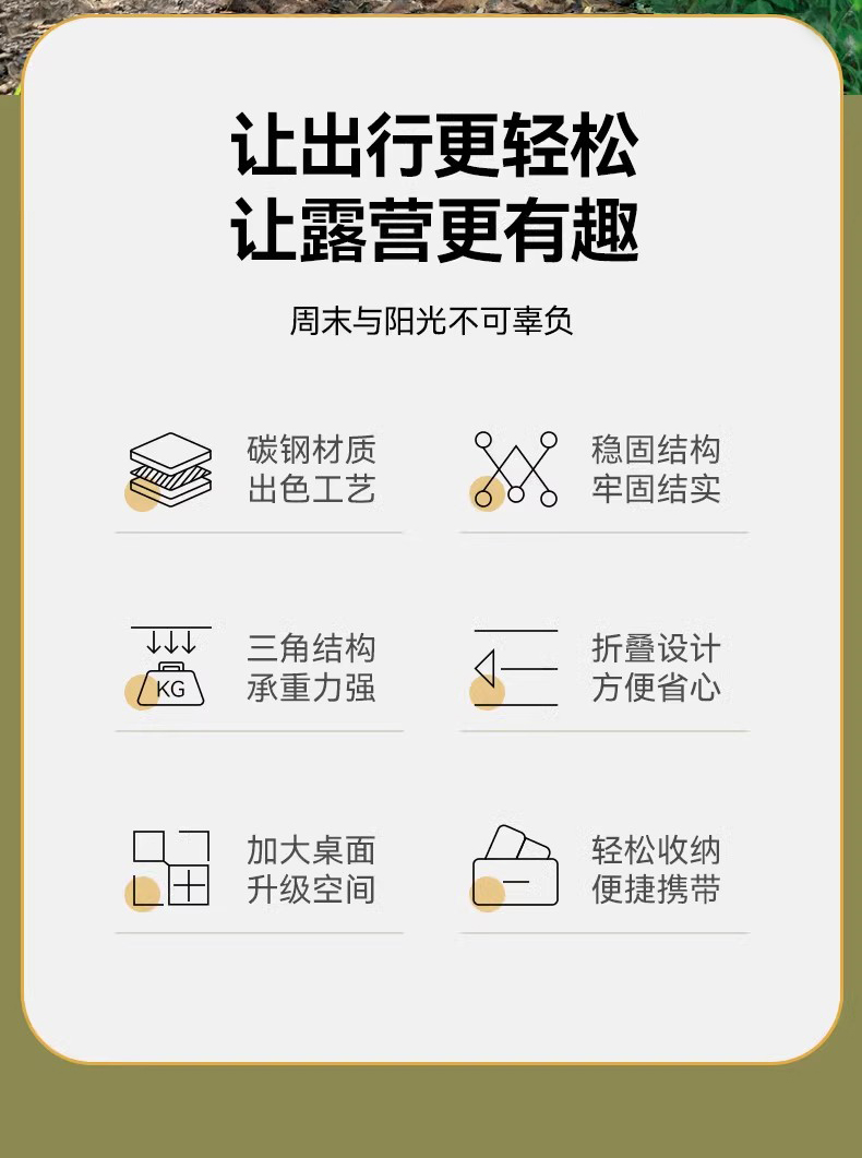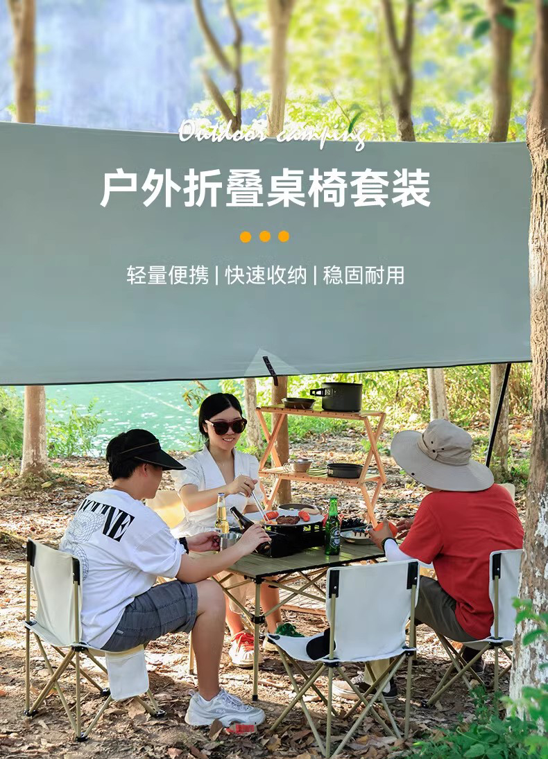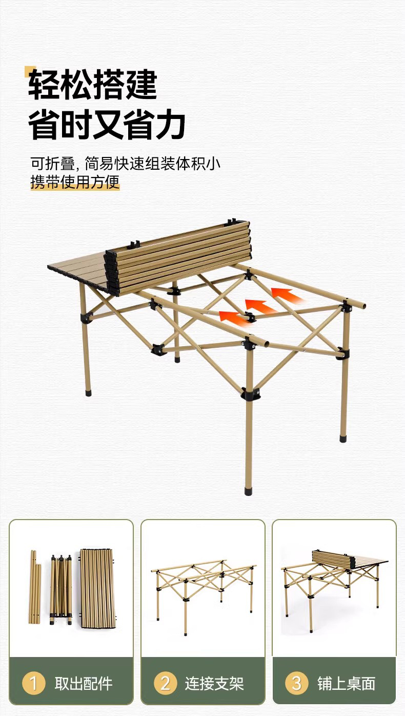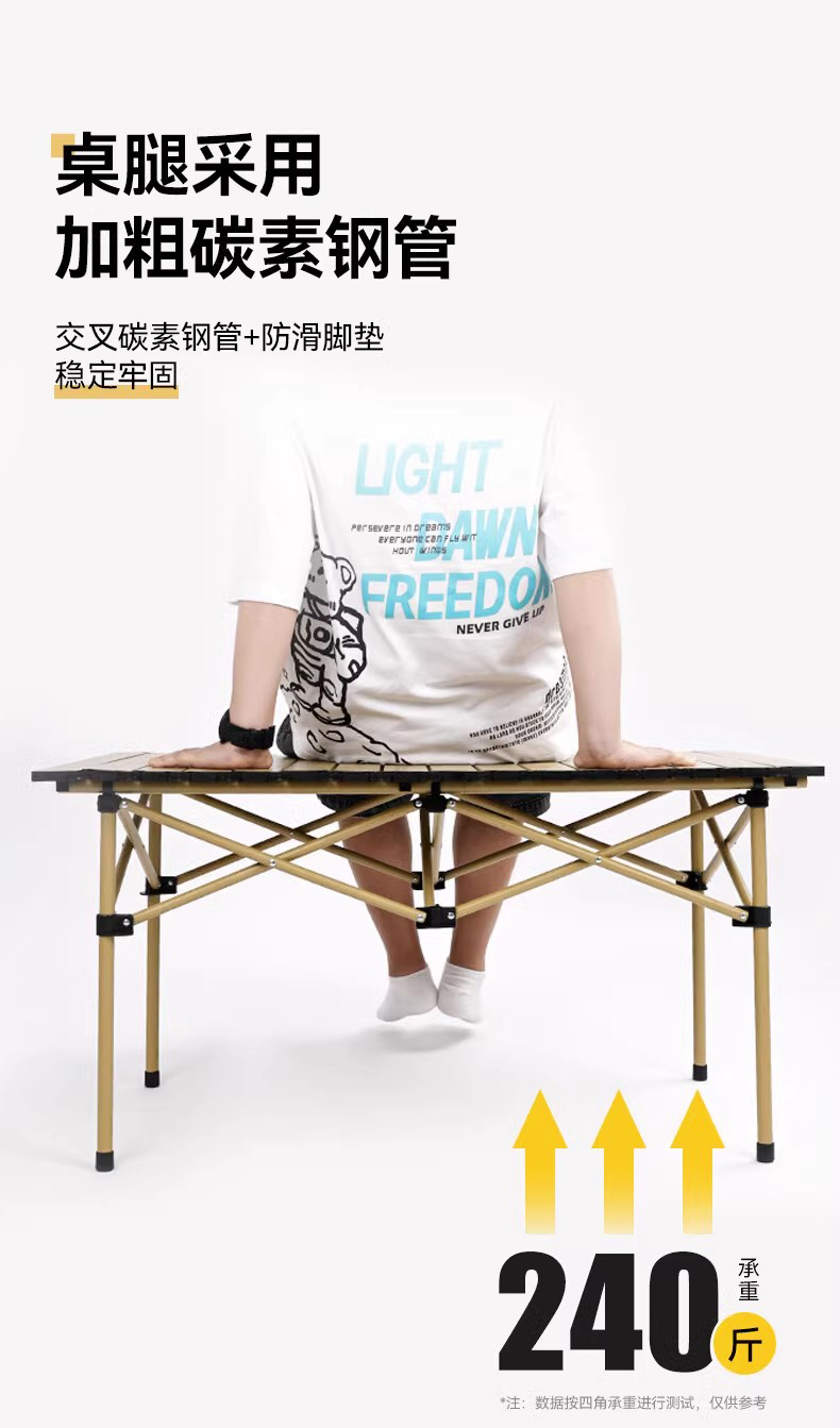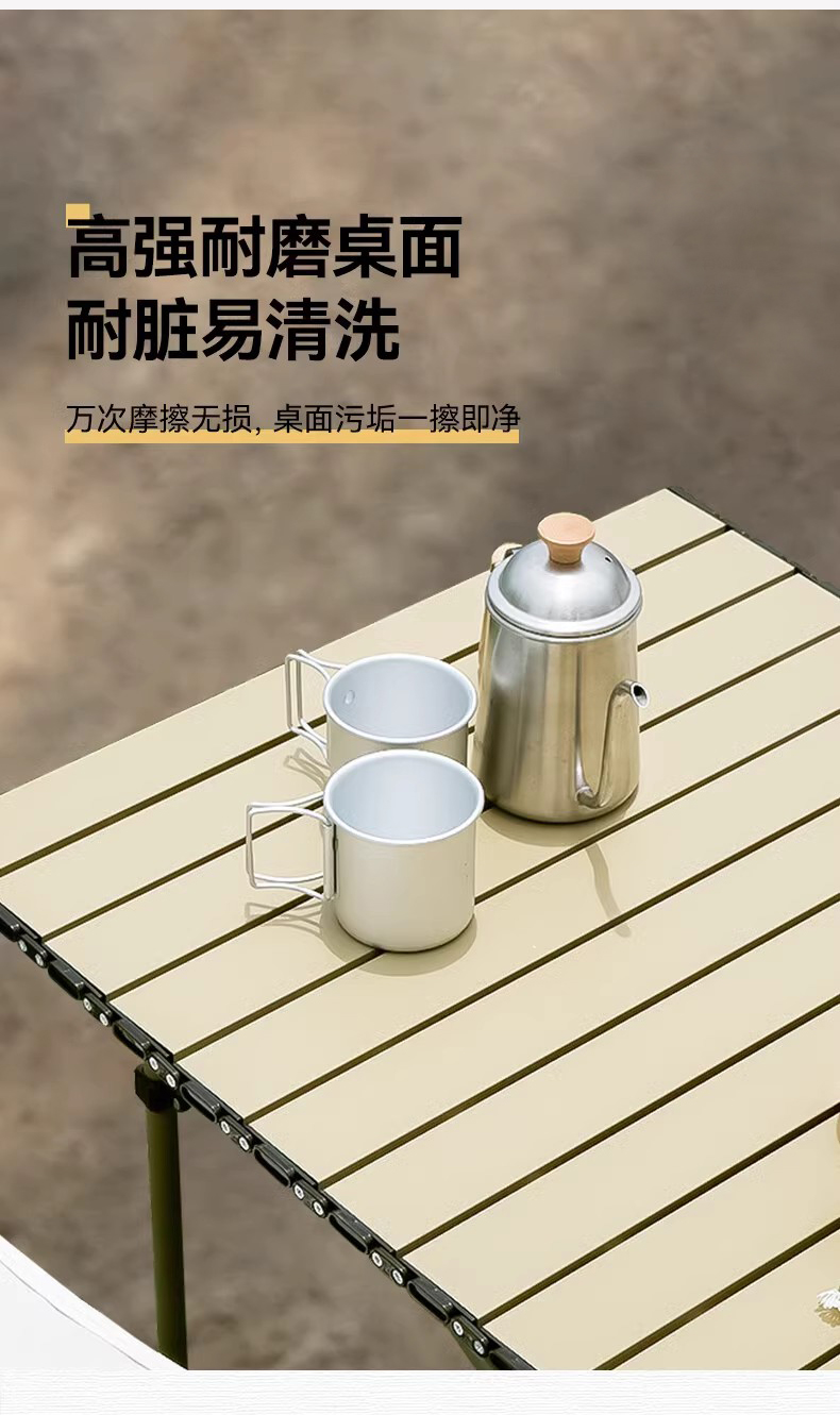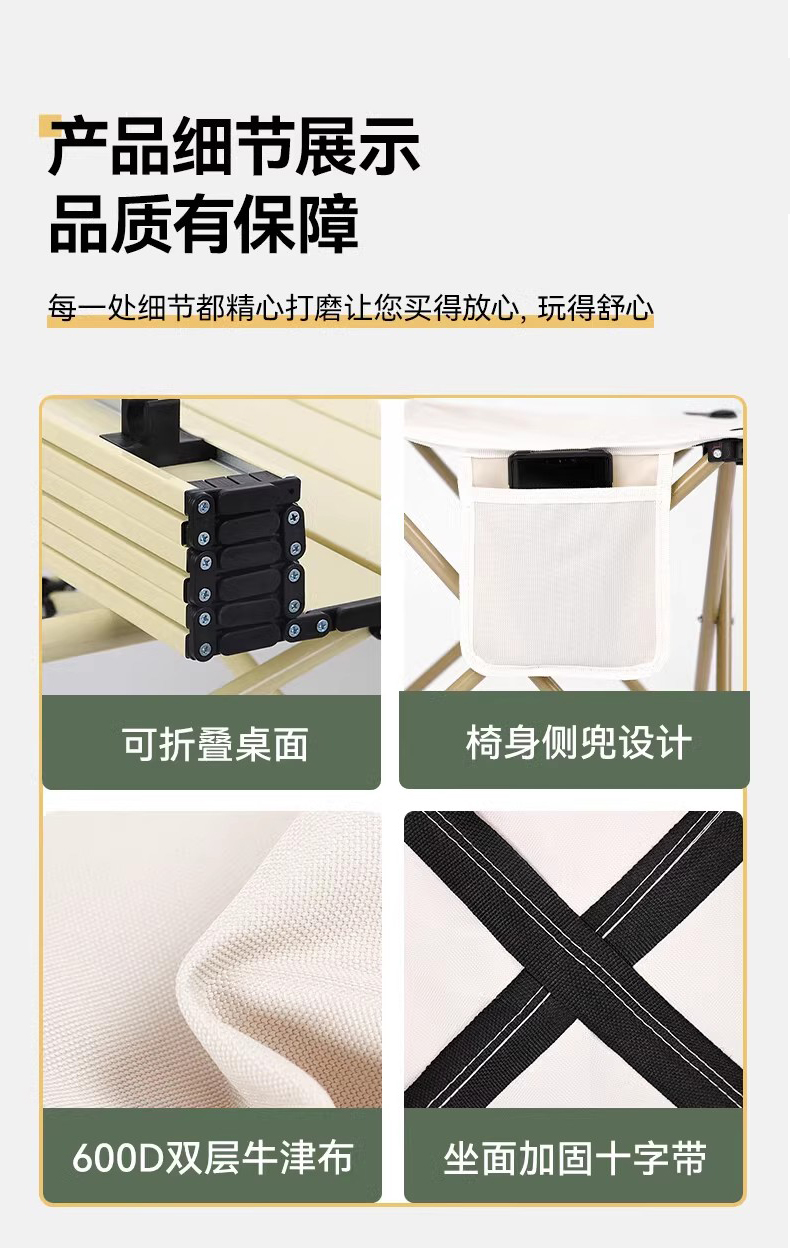 材质:铝质(桌面)碳素钢(桌架) 600D牛津布、碳素钢支架