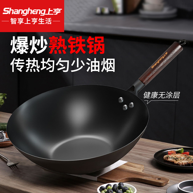 上亨(shangheng) 家用厨房电器具 上亨无涂层铁锅SHZH-CJCG012-34cm黑色 (单位:个) 上亨无涂层铁锅SHZH-CJCG012-34cm黑色