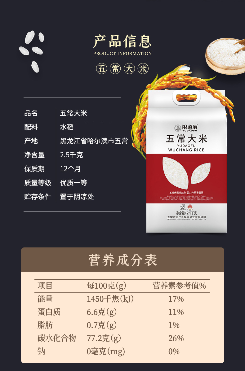 裕道府 2.5Kg 裕道府 五常大米(双层袋真空装)2.5kg 06.01.146 (单位:袋) 裕道府 五常大米(双层袋真空装)2.5kg 06.01.146