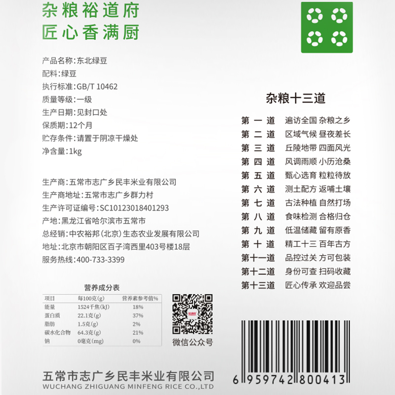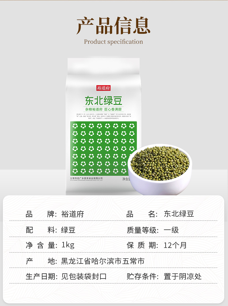 裕道府 1Kg 裕道府 东北绿豆 1kg 06.02.059 (单位:包) 裕道府 东北绿豆 1kg 06.02.059