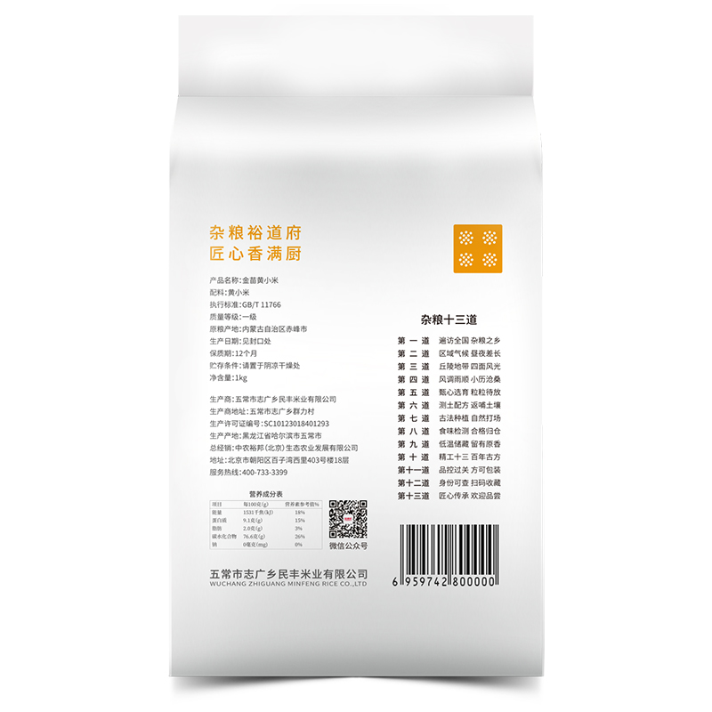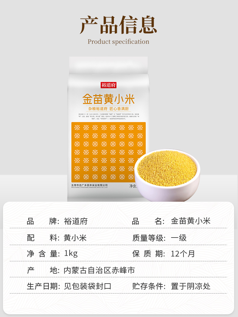 裕道府 1kg 裕道府 金苗黄小米 1kg (单位:袋) 裕道府 金苗黄小米 1kg