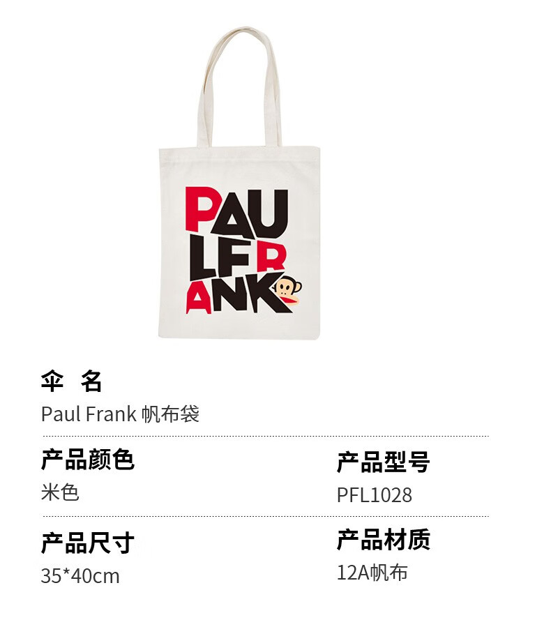 大嘴猴 PFL1028 大嘴猴(Paul Frank)帆布袋PFL1028 (单位:个) 大嘴猴(Paul Frank)帆布袋PFL1028
