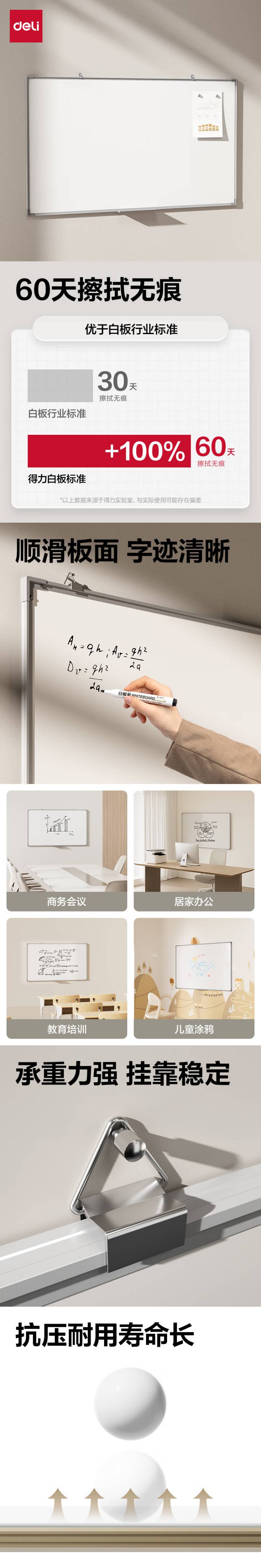 得力(deli) DP312 悬挂白板 1500*900mm (单位:块) 银色