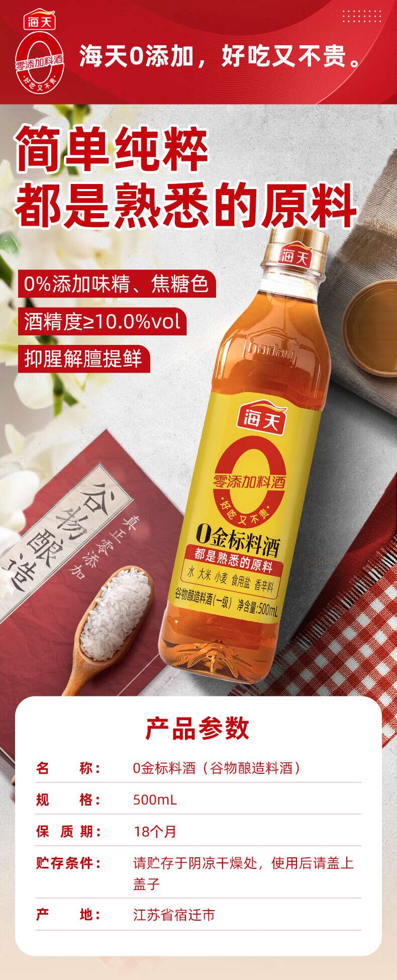 海天(HTDZ) 500ml 海天0金标料酒500ml(中华老字号) (单位:瓶) 海天0金标料酒500ml(中华老字号)