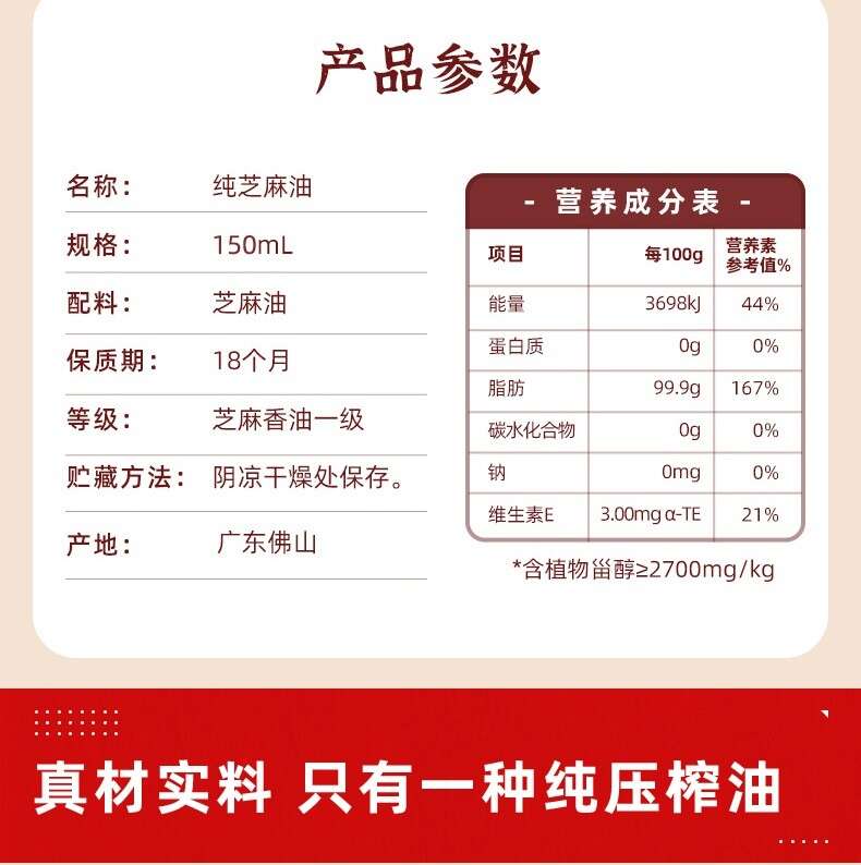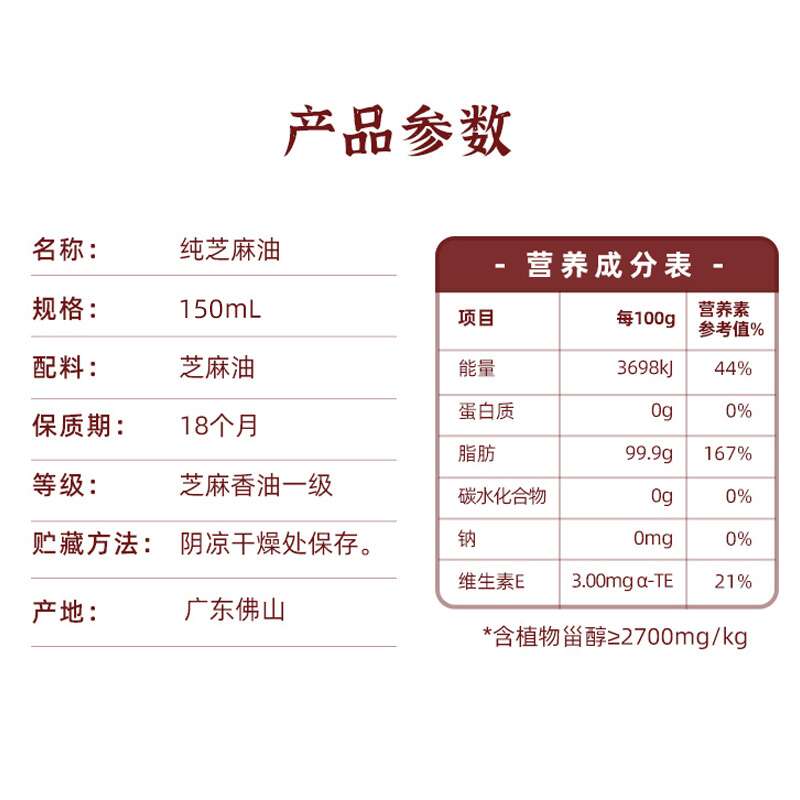海天(HTDZ) 150ml 海天天赐良谷纯芝麻油150mL*2瓶(中华老字号) (单位:瓶) 海天天赐良谷纯芝麻油150mL*2瓶(中华老字号)