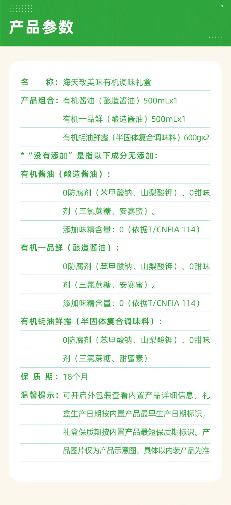 海天(HTDZ) 礼盒 海天致美味-有机调味礼盒(轻量装) (单位:盒) 海天致美味-有机调味礼盒(轻量装)